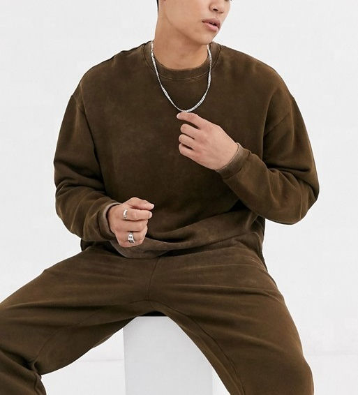 Conjunto de dos piezas Vintage personalizado para hombre acampanado lavado ácido Sunfaded Sudadera con capucha pantalones de chándal Jogger pantalla DTG estampado de talla grande invierno