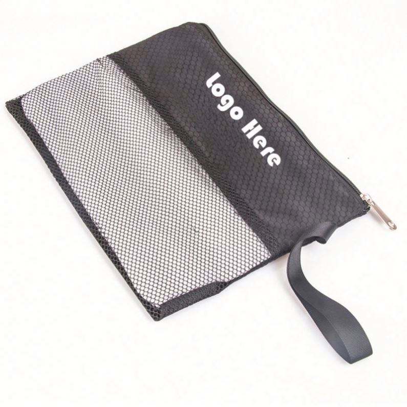 Bolsa de Toallas Personalizada de Microfibra de Poliéster Vintage - Bolsa de Malla Negra con Cierre y Correa para la Muñeca, Sección Transparente para Regalos