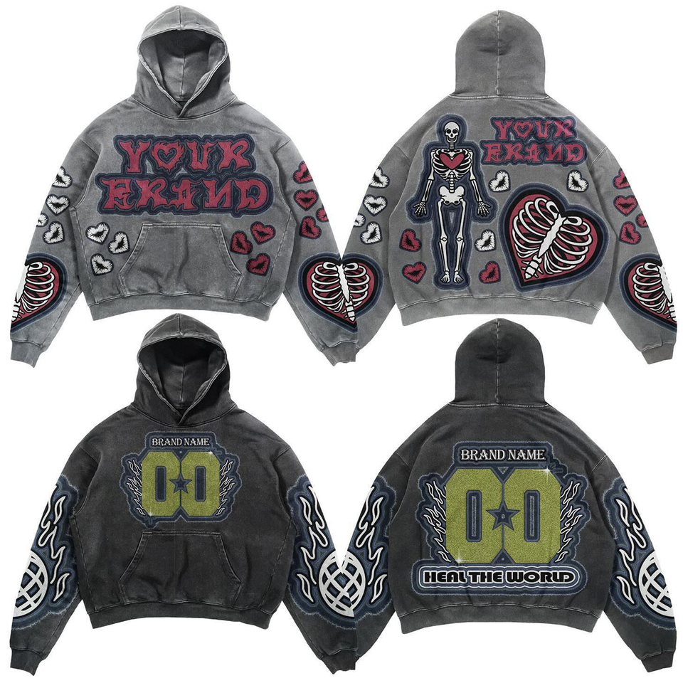Técnicas:Bordado, Impreso, Estampado de hojaldre, Lavado ácido, De diamantes de imitación, Bordado de cadena