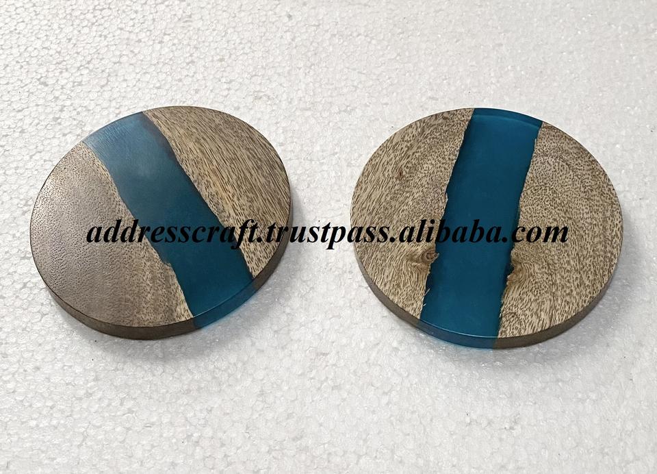 Juego de posavasos de madera de Acacia y resina de forma redonda de estilo Vintage personalizado, utensilios de cocina para el hogar, decoración de mesa de fiesta de cumpleaños usada