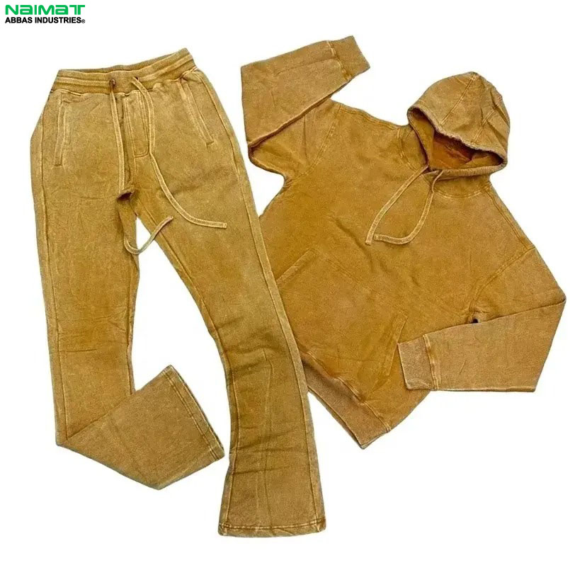 Conjuntos de 2 piezas unisex traje de sudor acampanado apilado lavado ácido desgastado lavado vintage invierno estampado personalizado