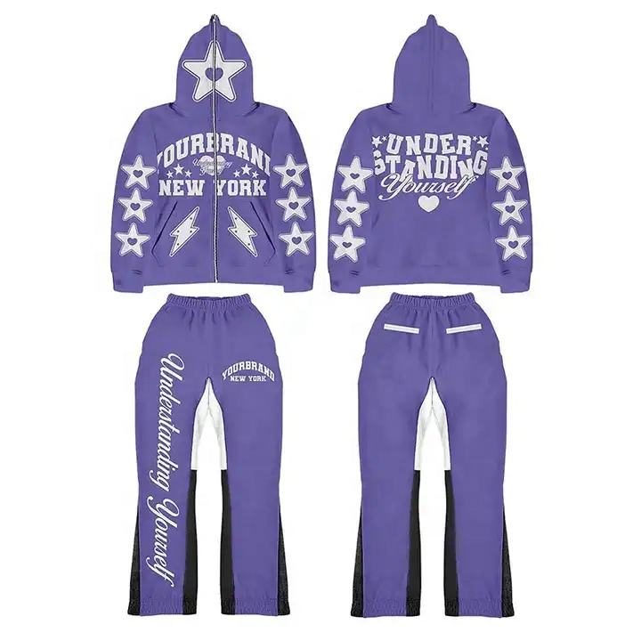 Conjunto de pantalones de chándal acampanados y Sudadera con capucha para hombre, ropa de calle, chándal de moda, conjunto de 2 piezas, chándal para hombre
