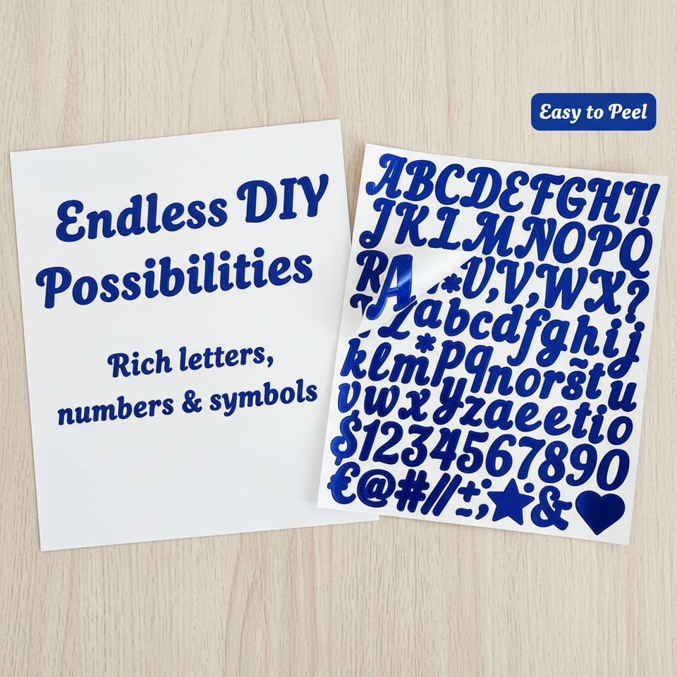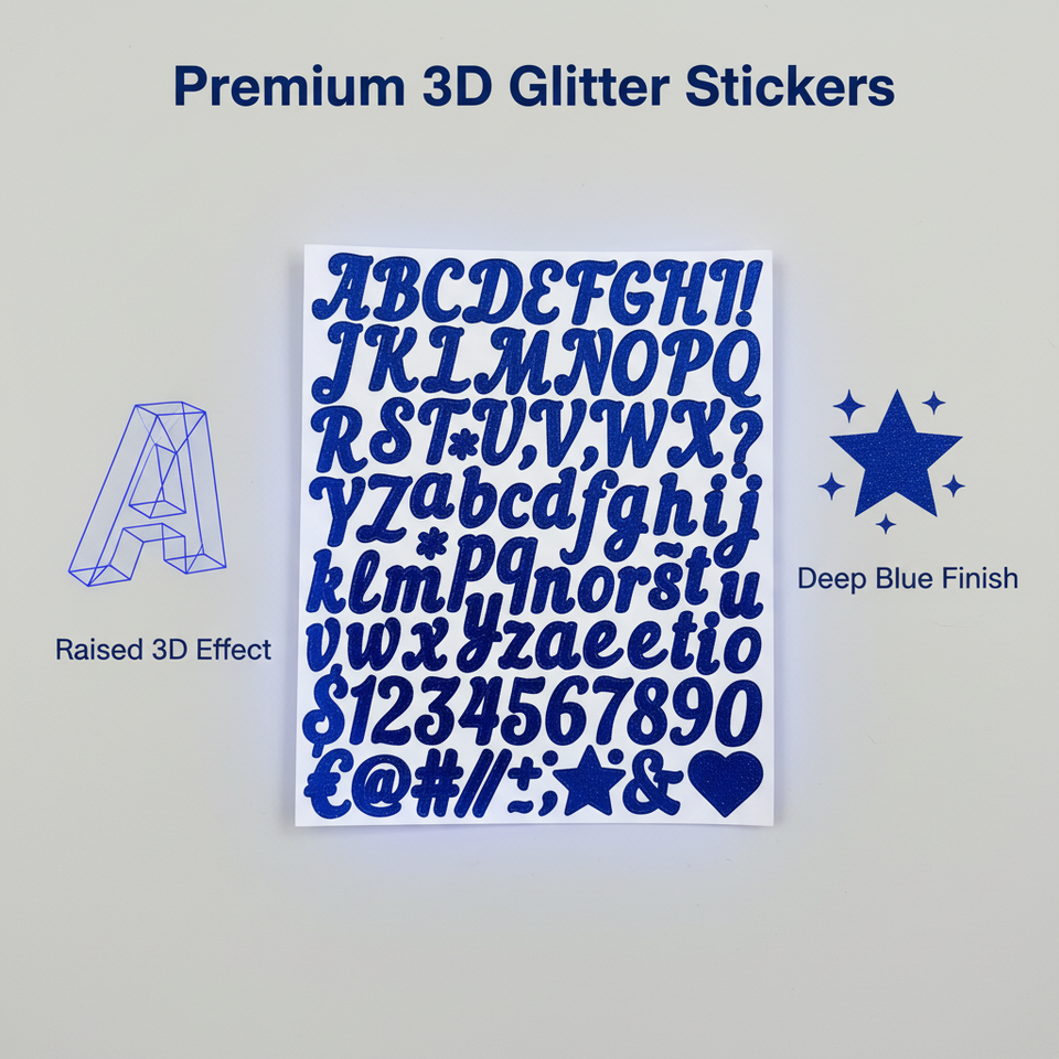 Custom Vinyl Glitter Letter Number Stickers Self-Adhesive Waterproof UV Coated Rectangular DIY Crafts for Photo Frames Candle