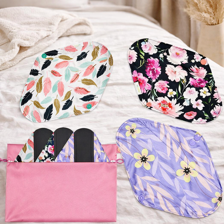 Juego de Toallas Sanitarias Lavables Personalizadas con Bolsa Impermeable, Toallas Sanitarias Reutilizables con Diseño Floral para Mujeres, Toallas Menstruales