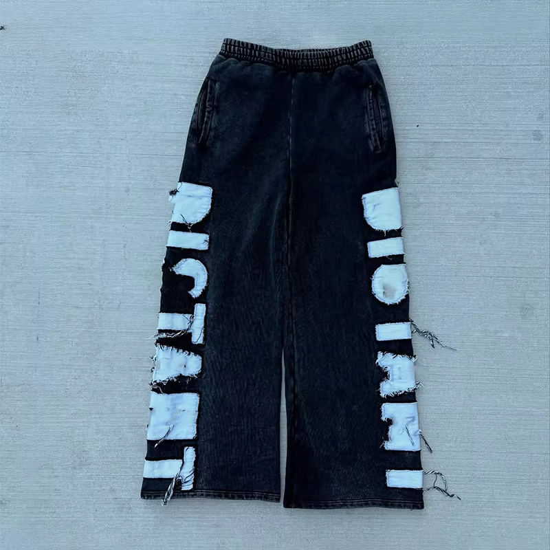 Conjunto de Sudadera con Capucha y Pantalones Deportivos de Estilo Vintage Lavado Personalizado con Bordado Desteñido por el Sol, Sudadera con Capucha y Pantalones Deportivos Acampanados para Hombre, Conjunto Deportivo OEM de Moda