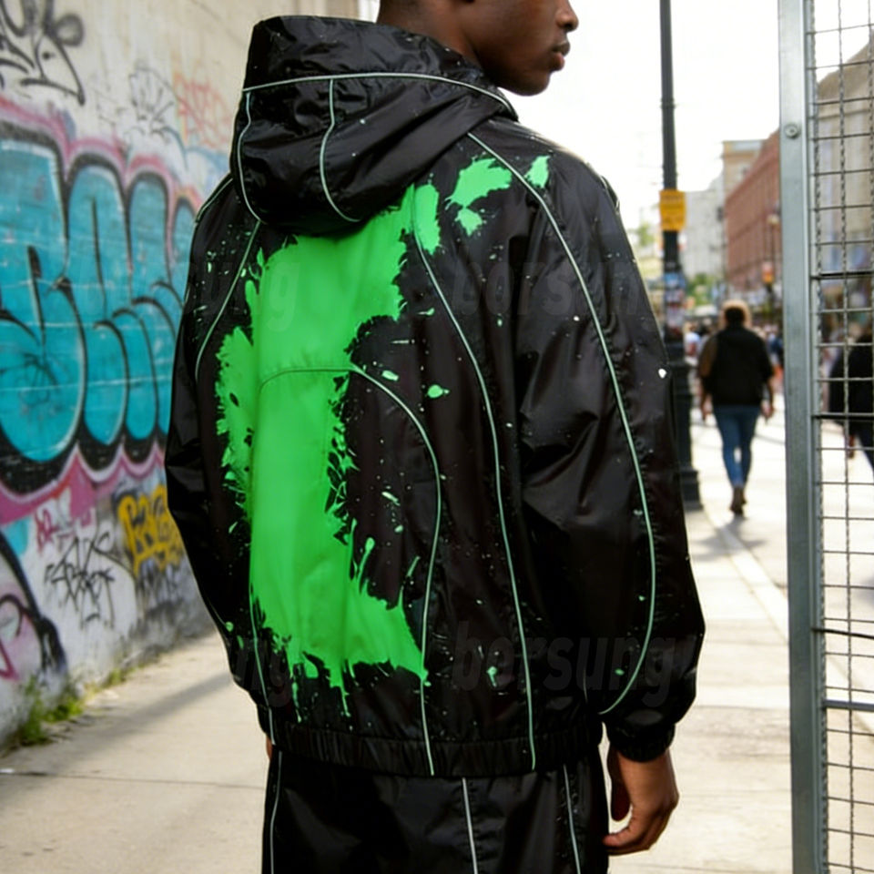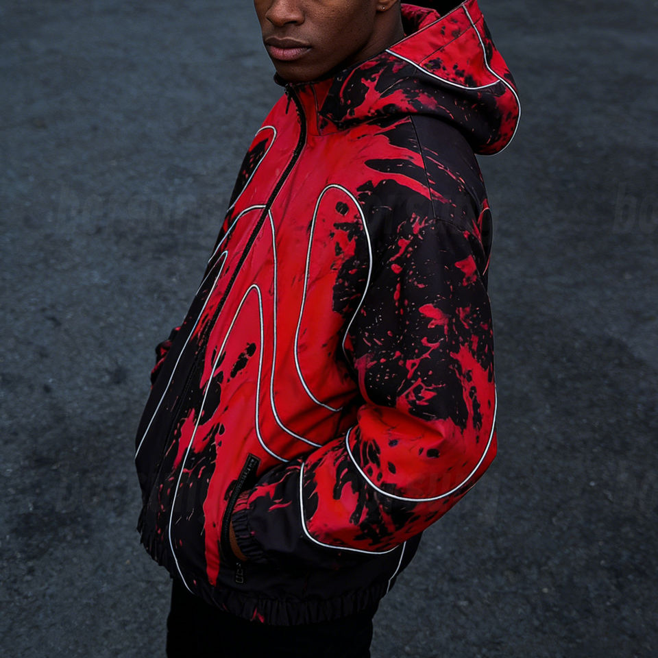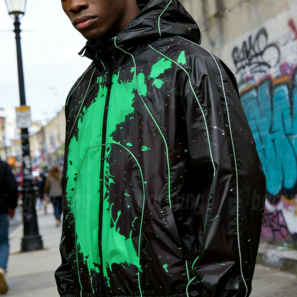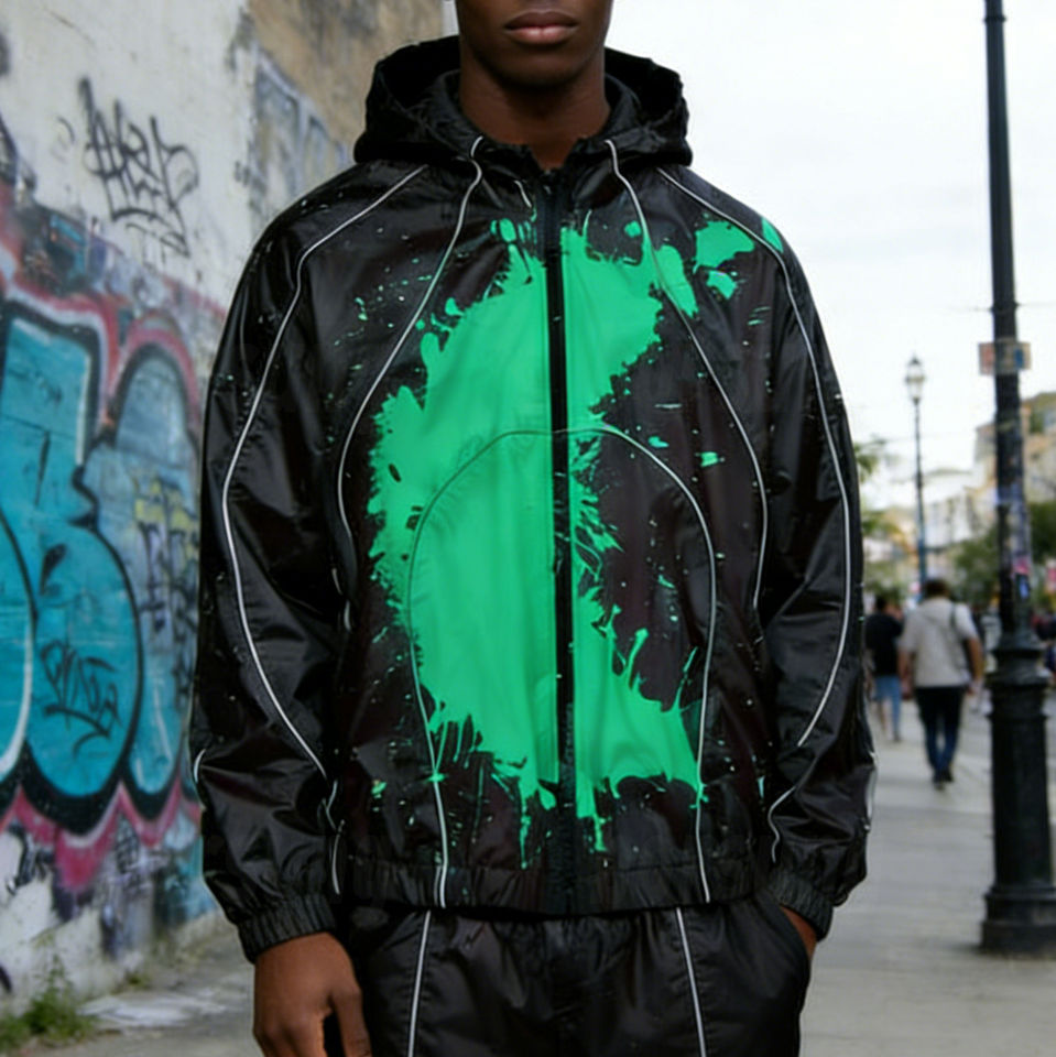 Chaqueta Cortavientos Personalizada con Impresión Delgada que Cambia de Color con el Agua, Impermeable, Estilo Urbano para Hombre, con Capucha y Ribetes Reflectantes