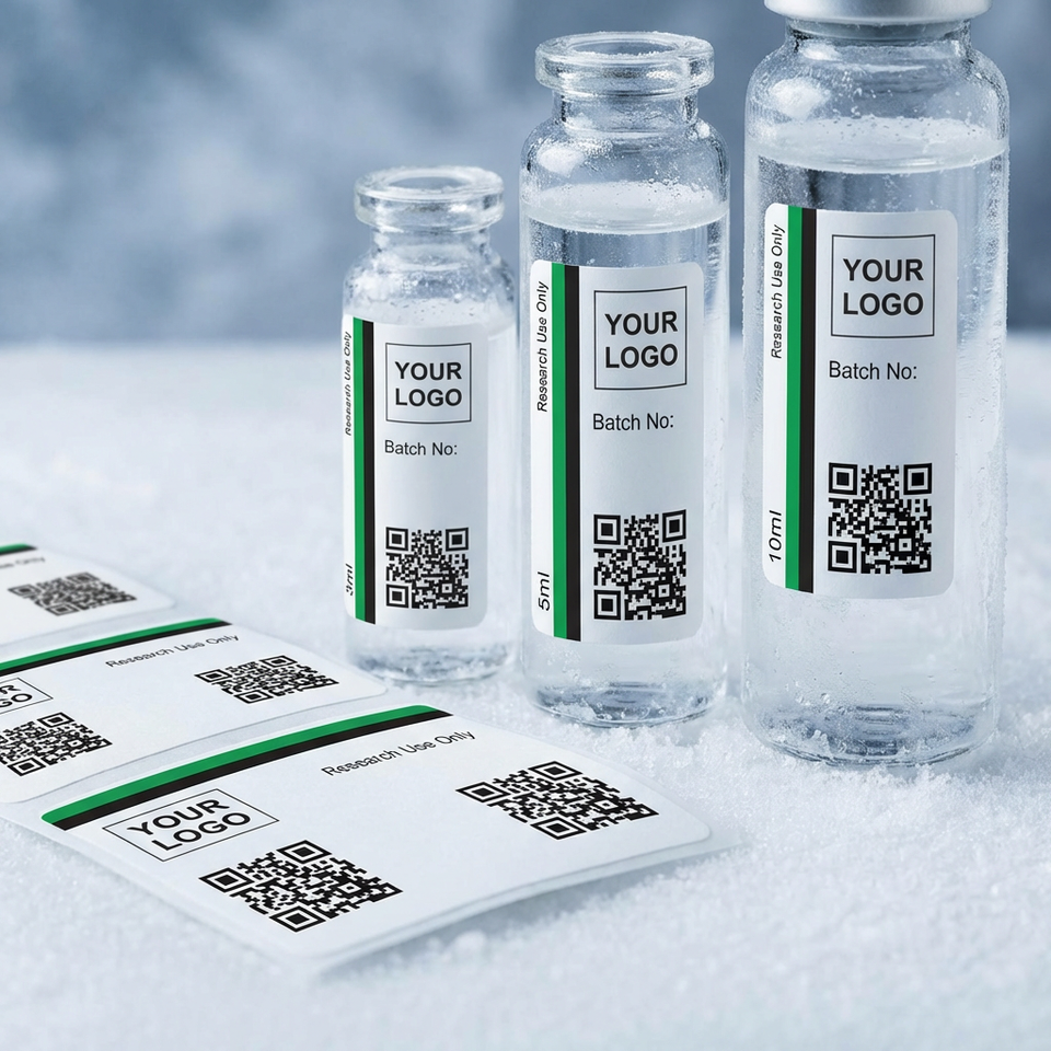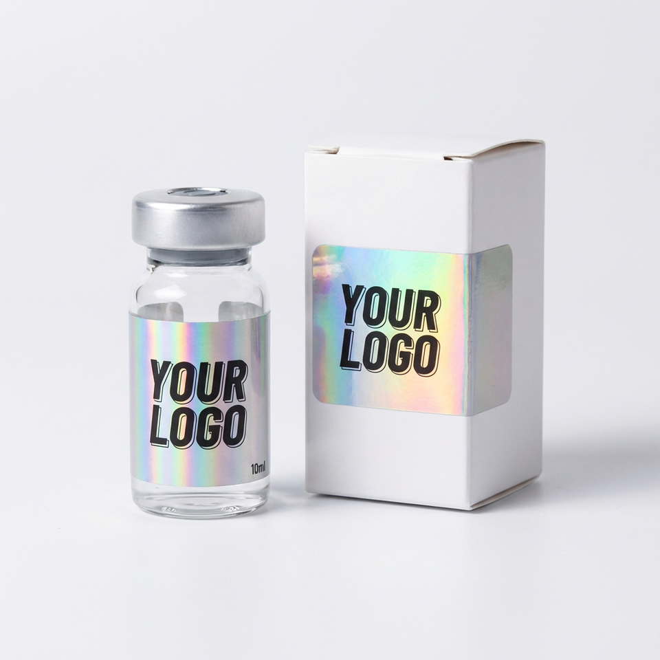 Etiquetas de Vinilo Personalizadas a Prueba de Agua con Código de Barras para Frascos de Vidrio Farmacéuticos de 10 ml con Impresión CMYK de Alta Calidad