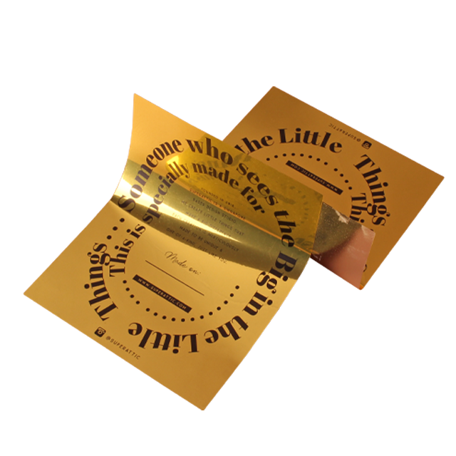 Hojas de pegatinas de vinilo dorado impermeables personalizadas para embalaje de alimentos, cajas de cosméticos y sobres de regalo