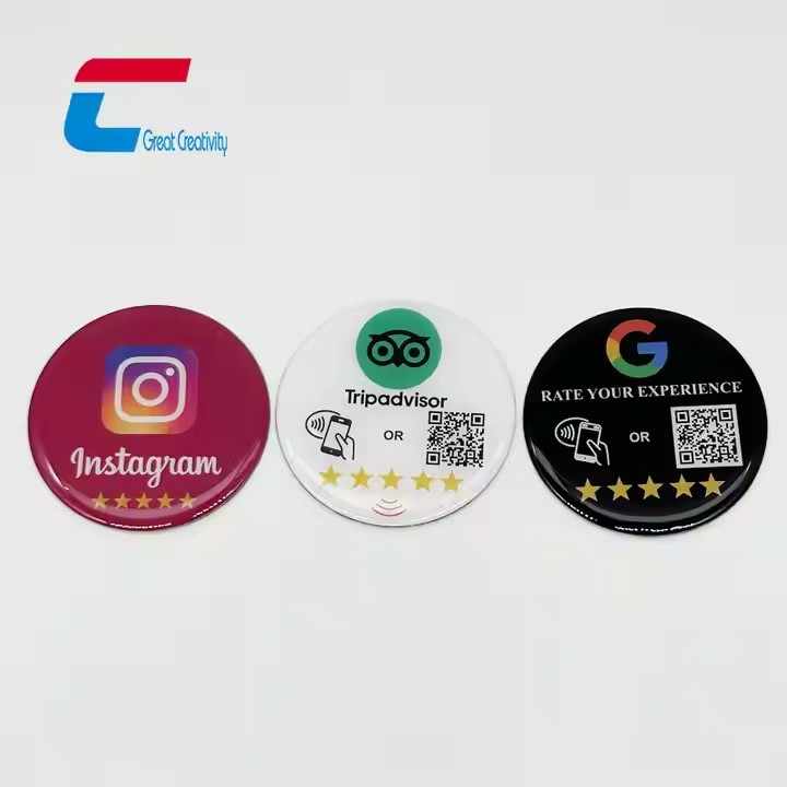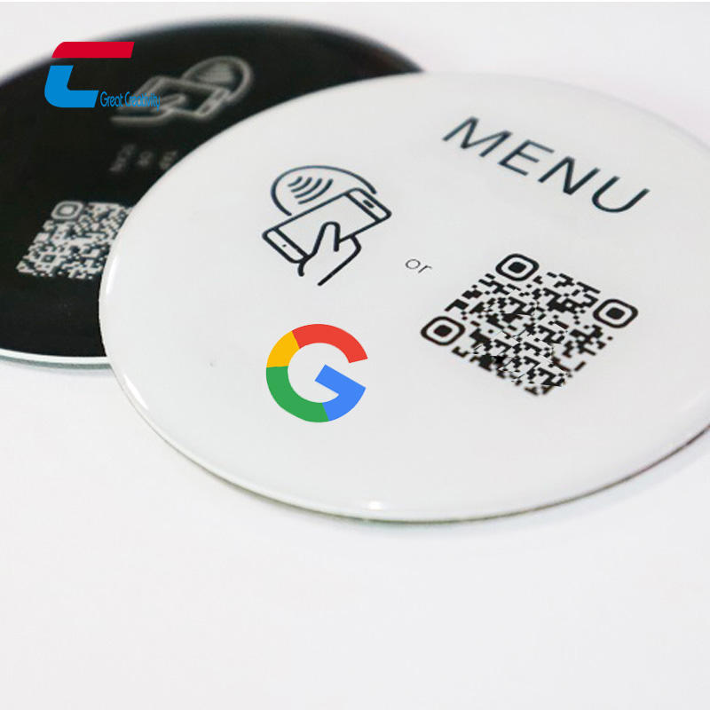 Etiqueta de menú de mesa NFC resistente al agua personalizada Social Media NTAG 213 Google Reviews NFC etiqueta epoxi
