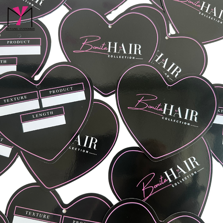 Etiquetas de PVC Impermeables Personalizadas para Cabello, Etiquetas Colgantes en Forma de Corazón, Etiquetas de Papel Sostenible con Diseño Impreso y Cordón