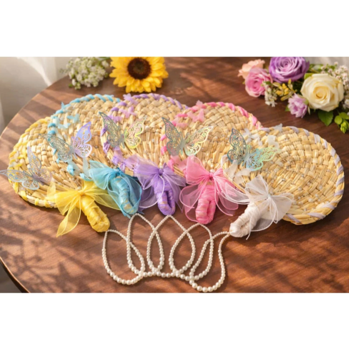 Abanico de Mano Personalizado para Boda, Abanico de Bambú y Ratán con Decoración de Lazo, Abanicos Hechos a Mano para Recuerdos de Boda para Invitados, Fábrica de Vietnam
