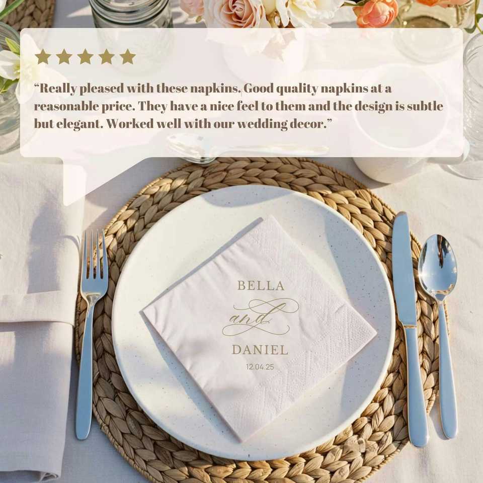Servilletas de Boda Personalizadas con Nombre, Servilletas de Fiesta con 100 Hojas, Cualquier Texto en las Servilletas de Compromiso