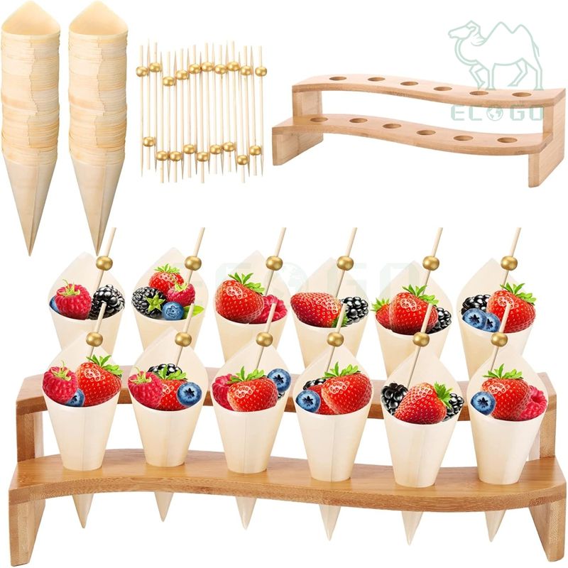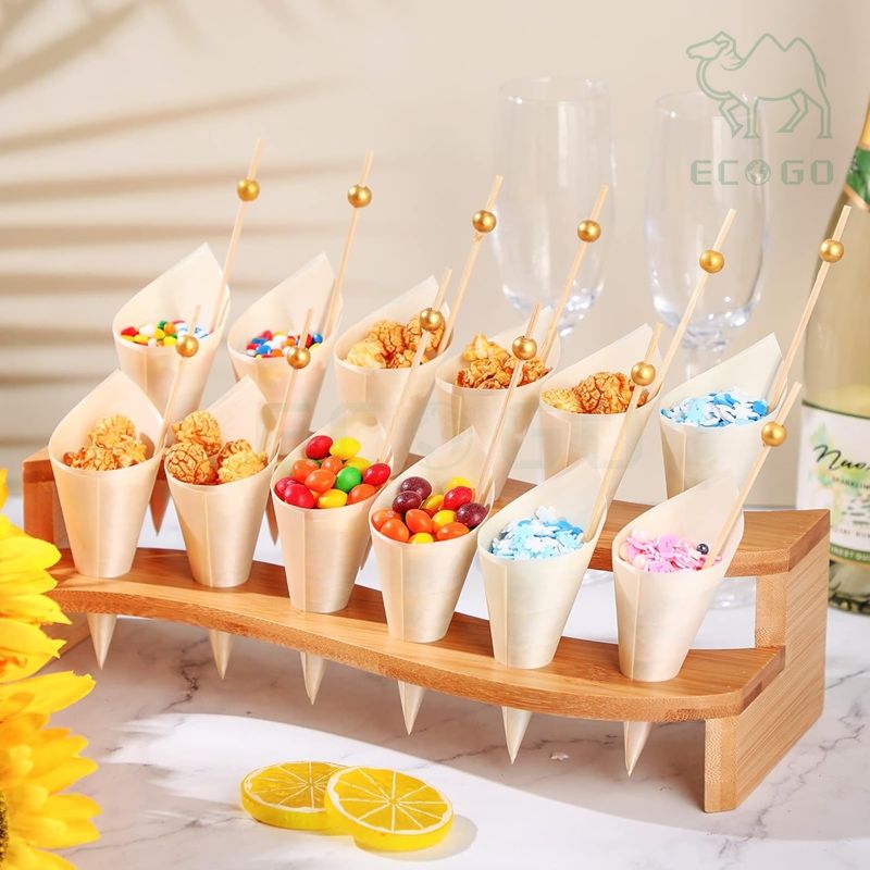 Organizador de Almacenamiento de Bambú Personalizado para Fiestas de Boda, Soporte para Exhibición de Alimentos, Soporte para Conos de Nieve, Soporte para Conos de Helado, de un Solo Nivel para Sala de Estar