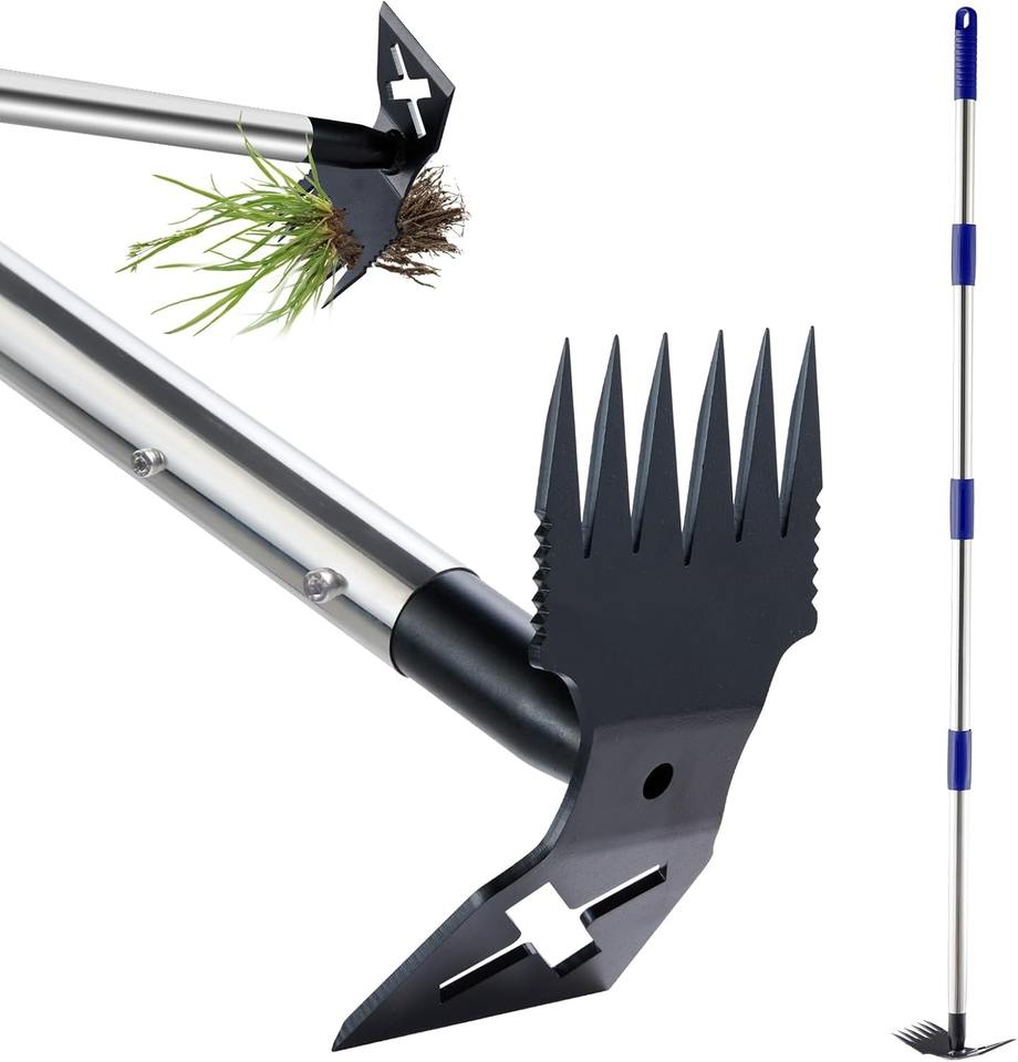 Herramienta desmalezadora manual de alta resistencia con mango, rastrillo y azada para jardín