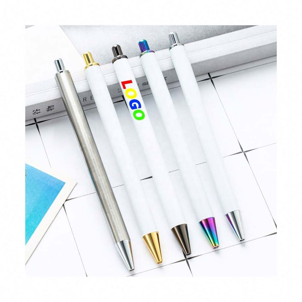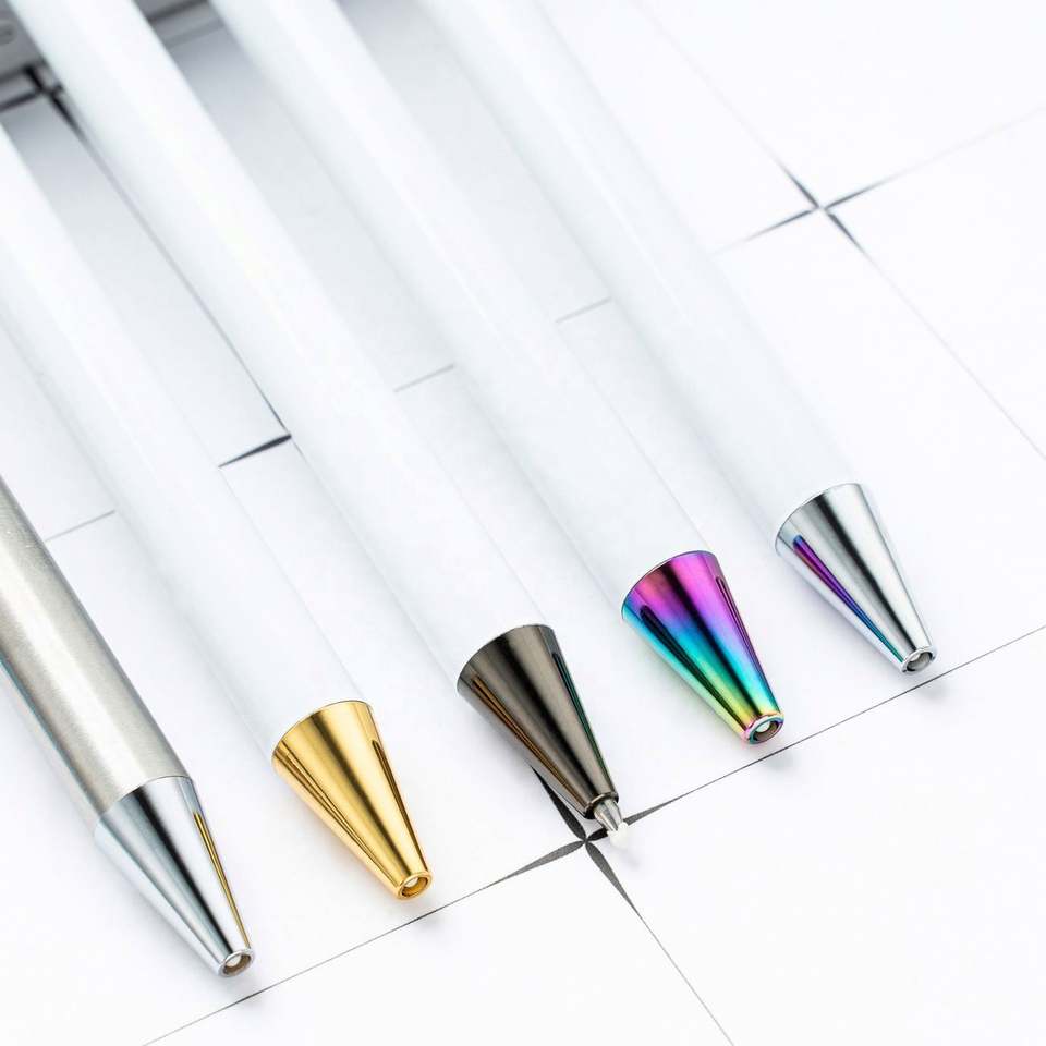 Bolígrafo Blanco Personalizado con Pegatinas de Cristal DIY, Diseño Metálico Retráctil, Regalo Personalizado, en Stock