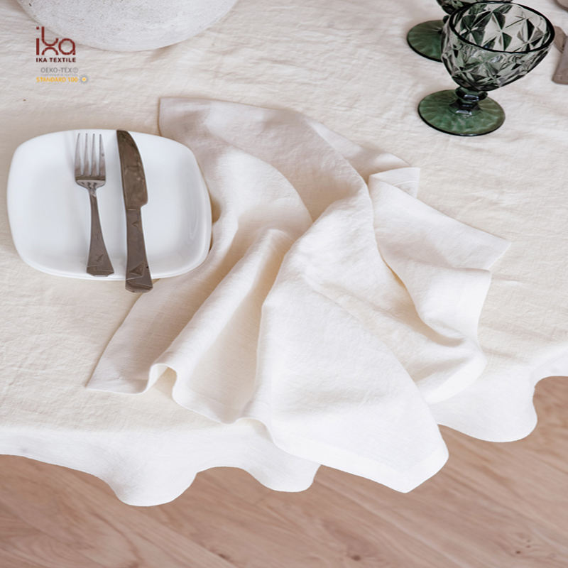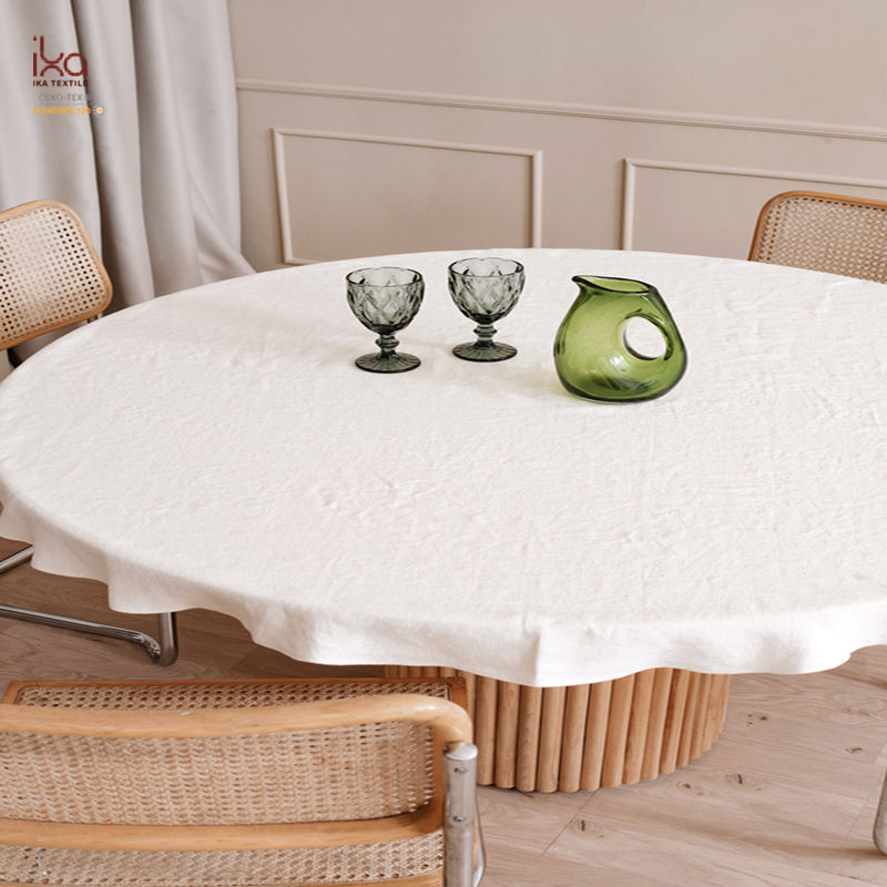 Mantel redondo de lino francés 100% tejido de Color sólido blanco de lujo personalizado para decoraciones de eventos y bodas