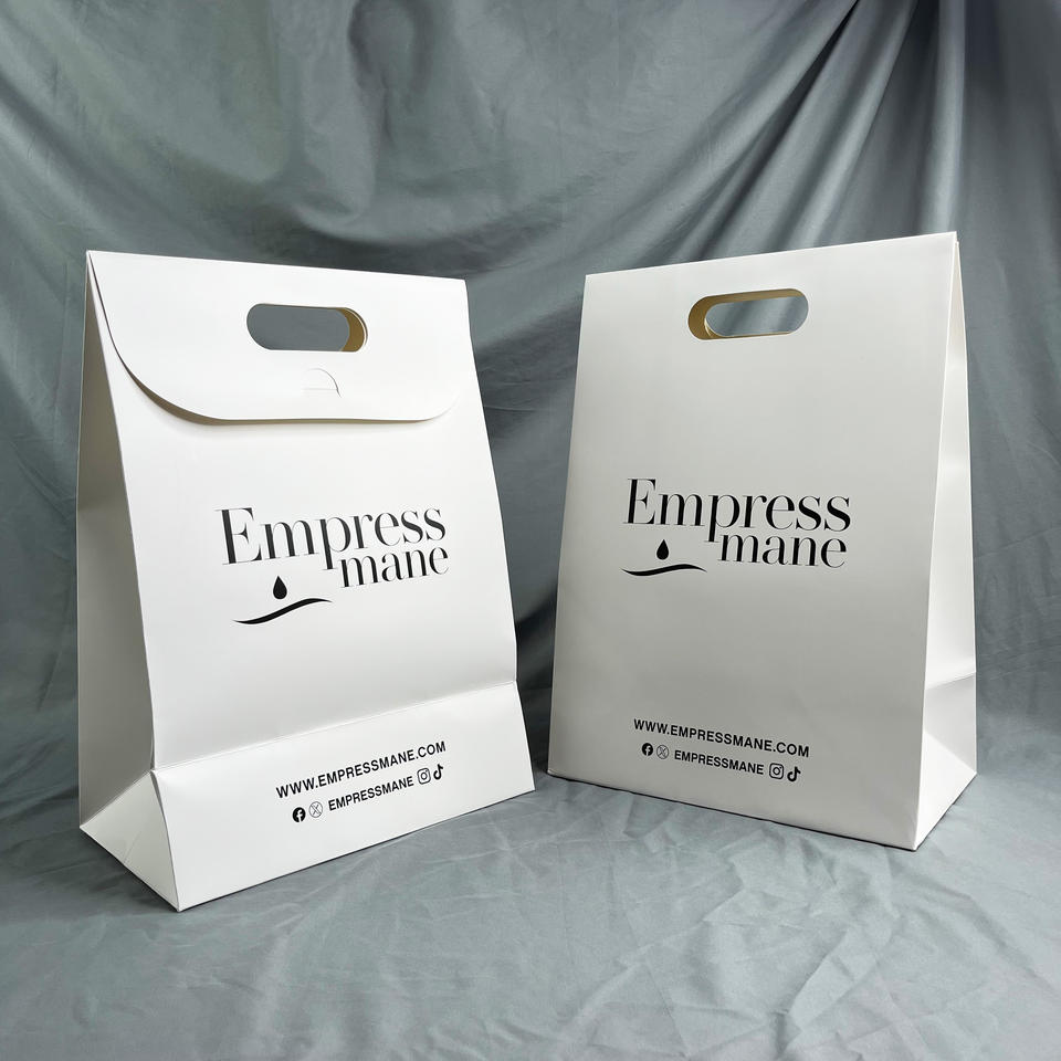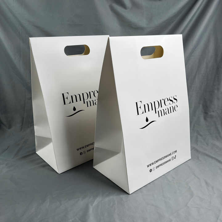 Bolsas de Papel Blancas con Asa Troquelada Personalizadas - Bolsas de Compras con Logotipo Impreso Personalizado para Peluquería y Belleza