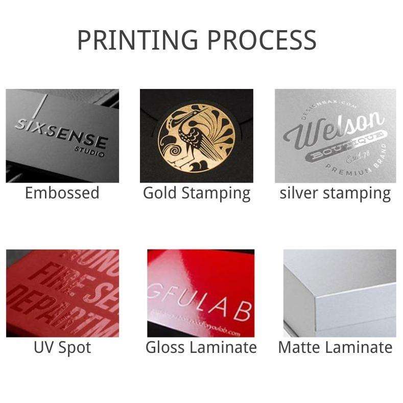 Laminación mate, Estampado, Relieve, Revestimiento UV, Lámina de oro