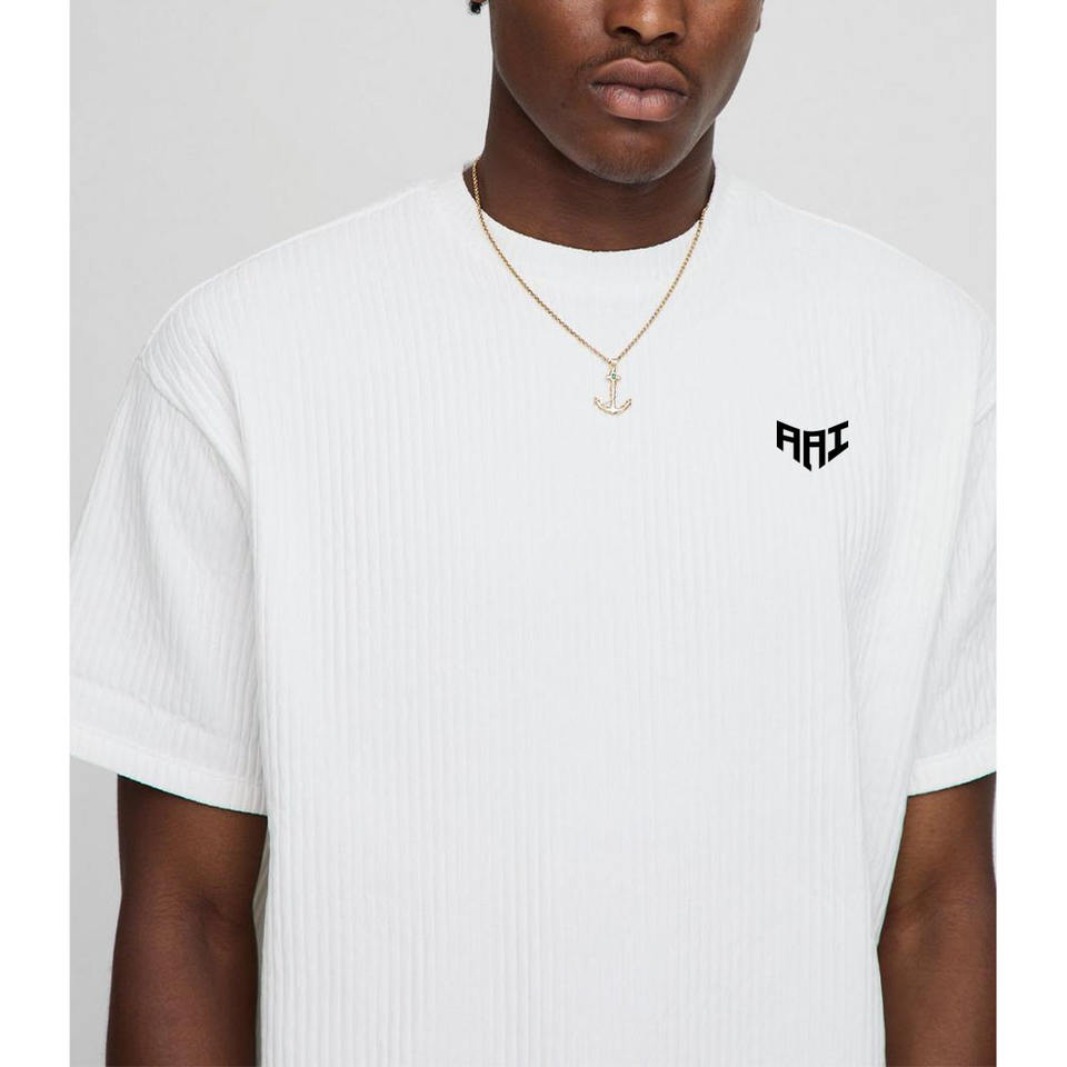 Conjunto de camiseta y pantalones cortos acanalados blancos personalizados para hombre, OEM, talla grande, ropa informal de verano, dos piezas, venta al por mayor