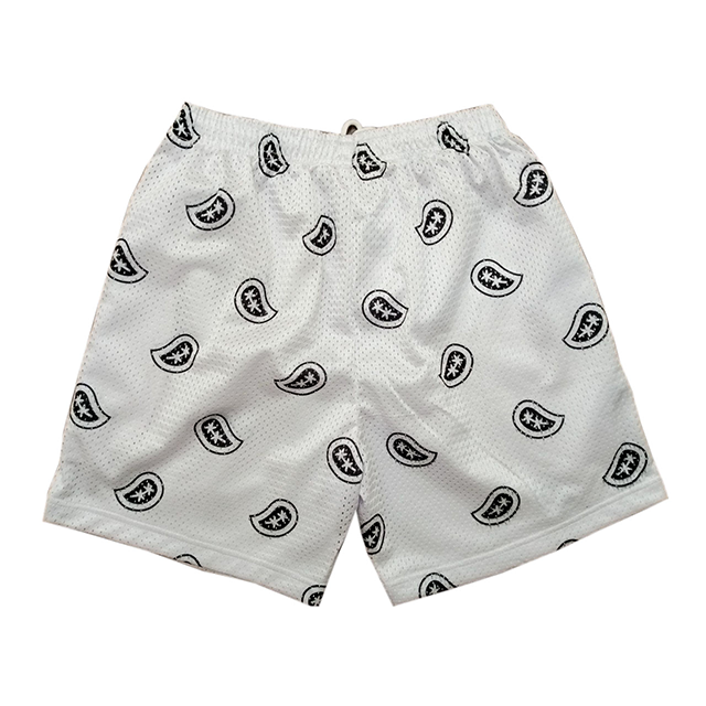 Pantalones Cortos de Baloncesto Blancos Personalizados con Estampado Paisley Negro, Ropa Deportiva Ligera de Secado Rápido para Hombre, para Gimnasio o Uso Casual