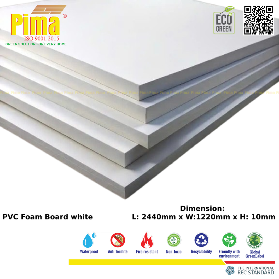 Lámina de Espuma de PVC WPC Blanca Personalizada, 10 mm de Espesor, 0.6 G/cm3 de Densidad, para Paredes Interiores, Paneles de Cocina, Fachadas de Muebles
