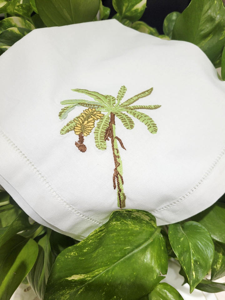 Servilleta de cena de árbol de plátano con bordado al por mayor personalizado 100% servilleta de mesa de punto de dobladillo de algodón blanco para eventos de Hotel en casa