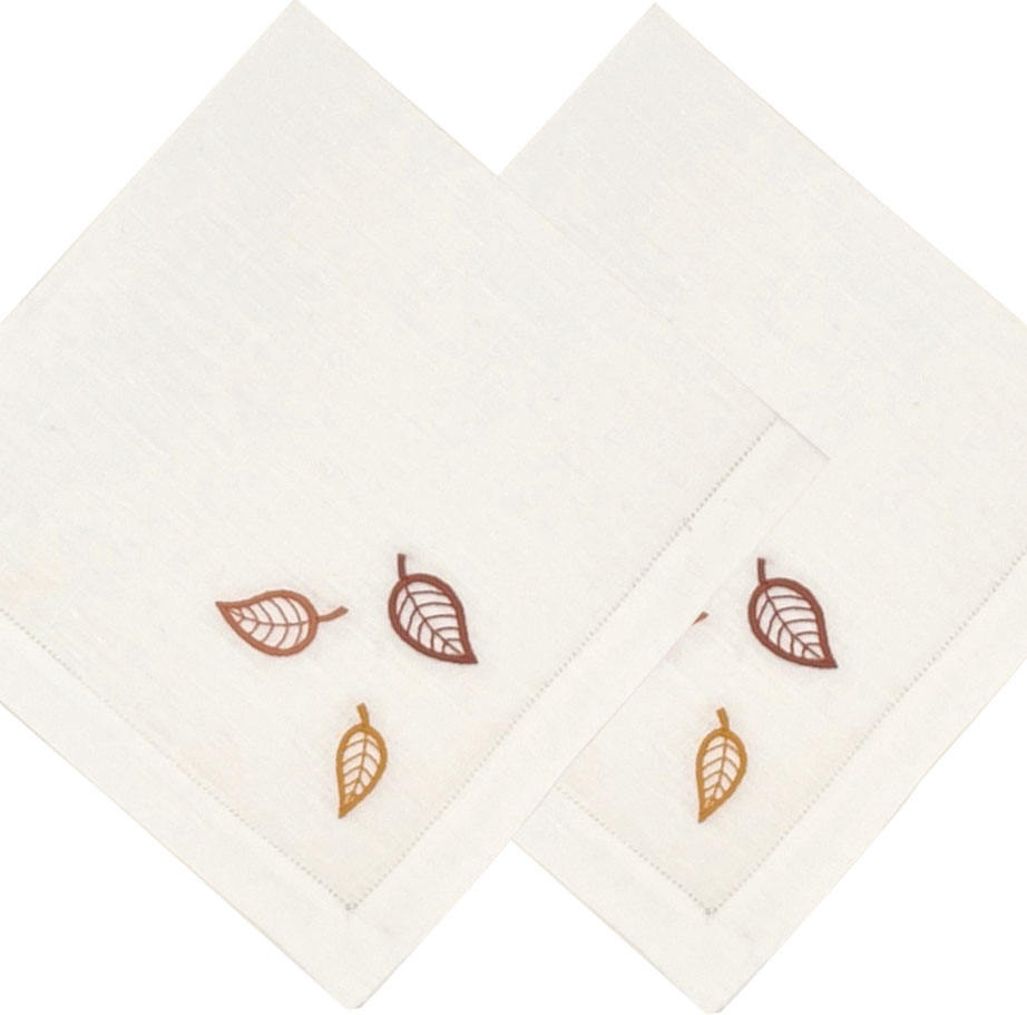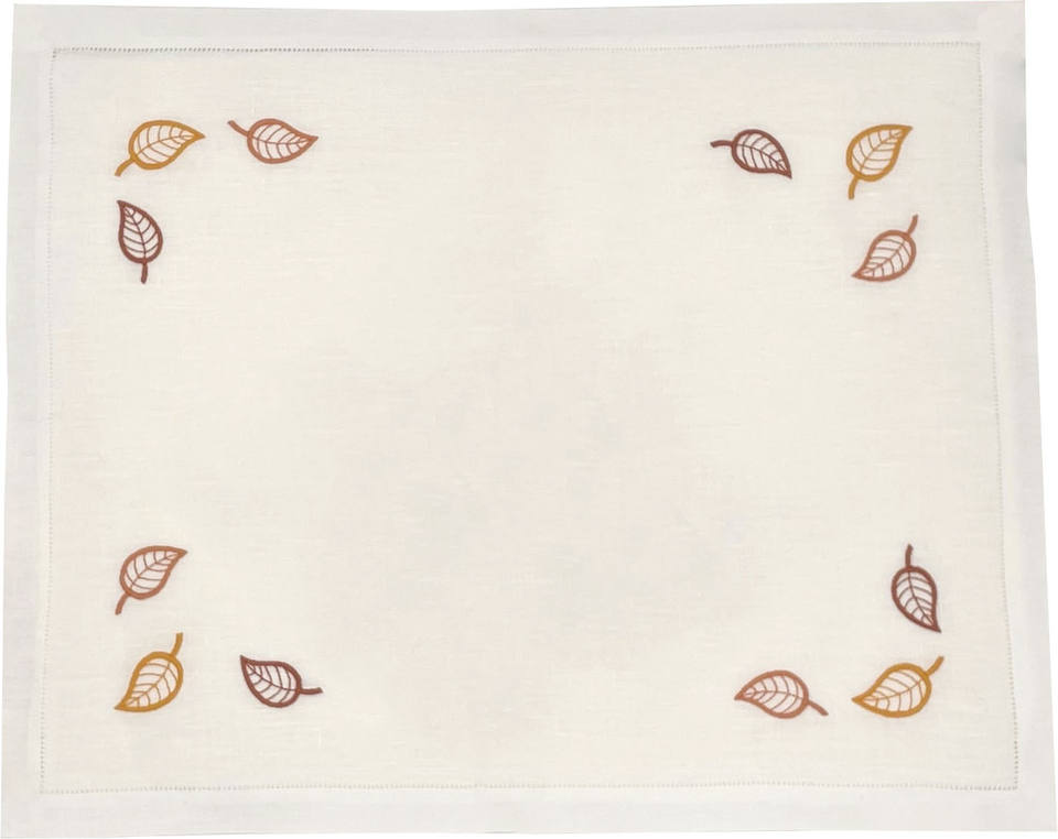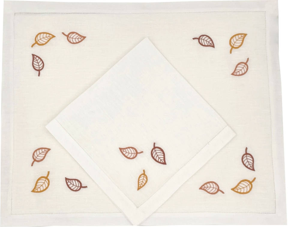 Juego de servilletas individuales de algodón blanco de alta calidad, venta al por mayor personalizada, bordado, diseño de hojas coloridas, hogar, cocina, restaurante, boda