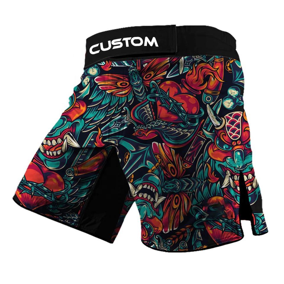 Pantalones cortos personalizados al por mayor para hombres con aberturas sublimación impresa No Gi Bjj Fight MMA Grappling