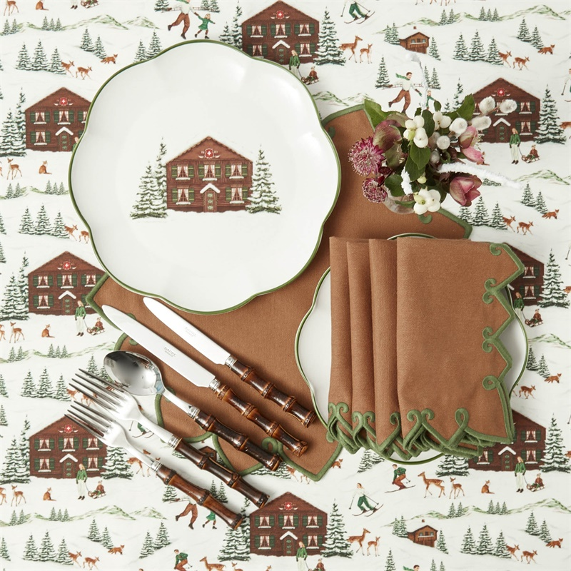 Servilletas de lino y algodón con borde festoneado bordadas hechas a mano al por mayor personalizadas, manteles individuales reutilizables para banquetes de boda, fiestas, uso doméstico