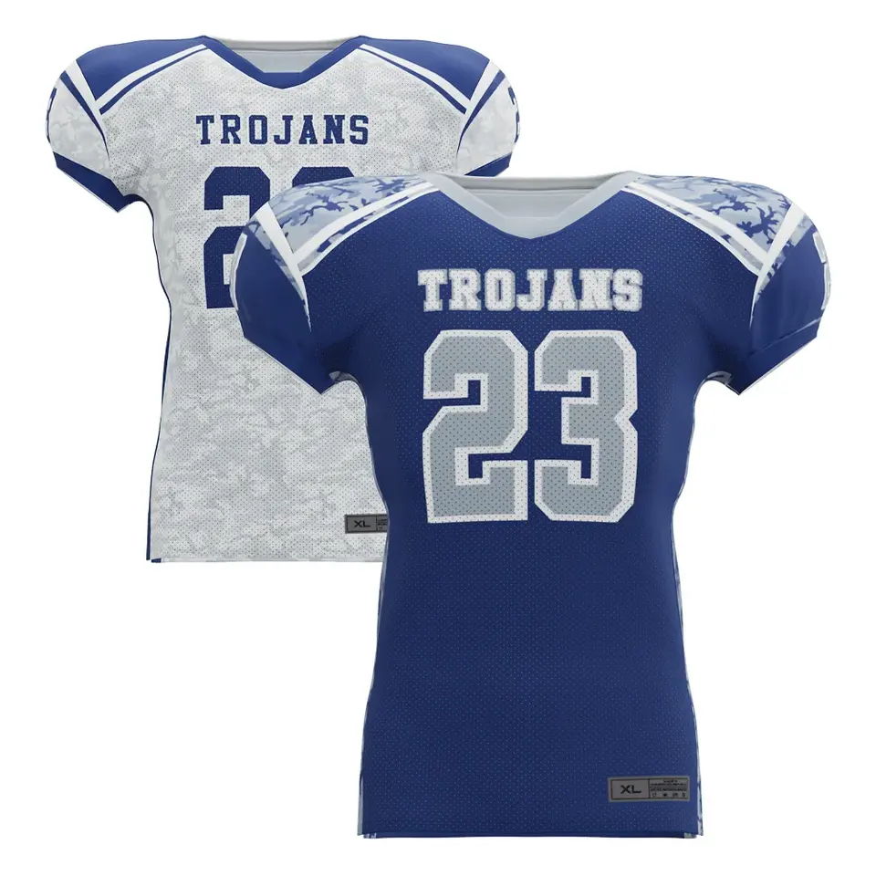 Personalizado al por mayor de alta calidad transpirable impreso sublimación logotipo personalizado de secado rápido Unisex fútbol americano Jersey poliéster