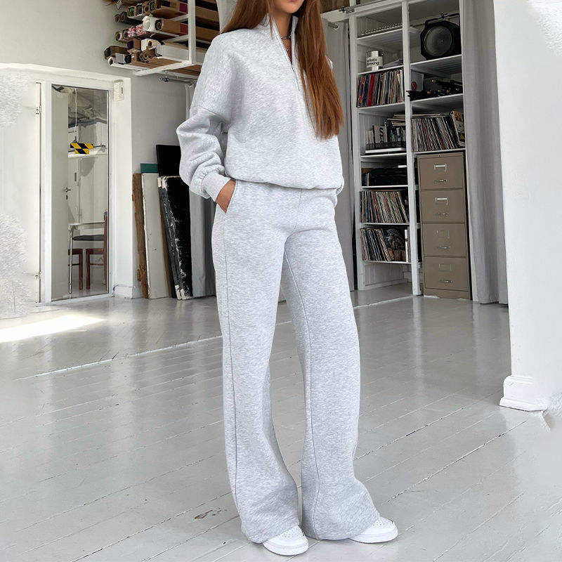 Conjunto Deportivo de Felpa para Mujer, Personalizado al por Mayor, Informal, Ligero, Transpirable, de Invierno, con Sudadera de Media Cremallera y Pantalones Jogger de Dos Piezas