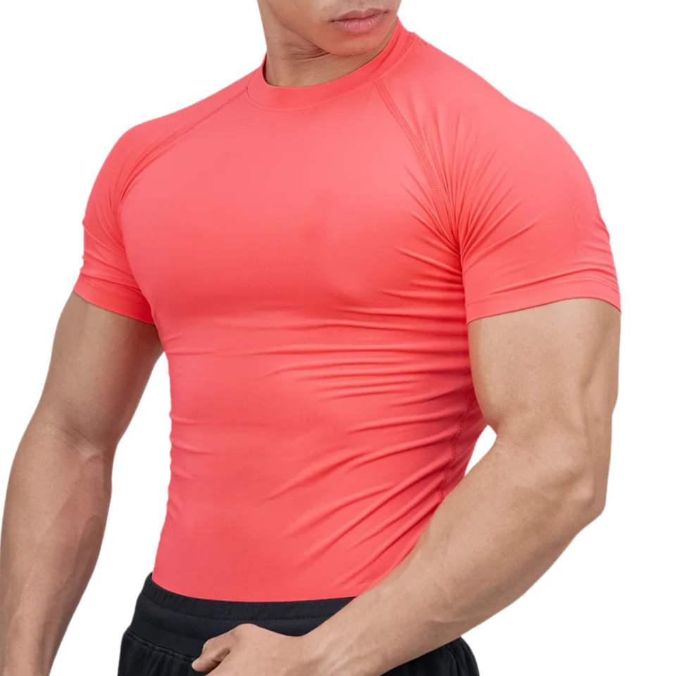 Camiseta de Compresión Deportiva para Hombre, Personalizada, al por Mayor, de Manga Corta, de Algodón, Sólida, de Secado Rápido, Transpirable, para Gimnasio, Entrenamiento, Fitness