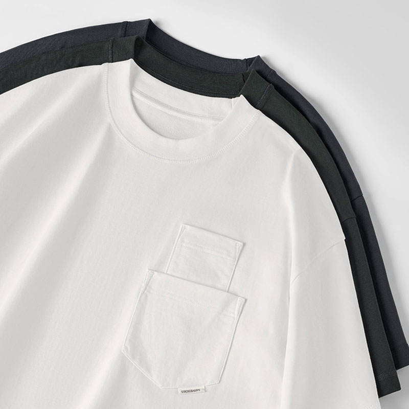 Camiseta 100% algodón personalizada al por mayor, camiseta de lujo con diseño personalizado para hombre, ropa de calle de gran tamaño, camiseta en blanco con doble bolsillo