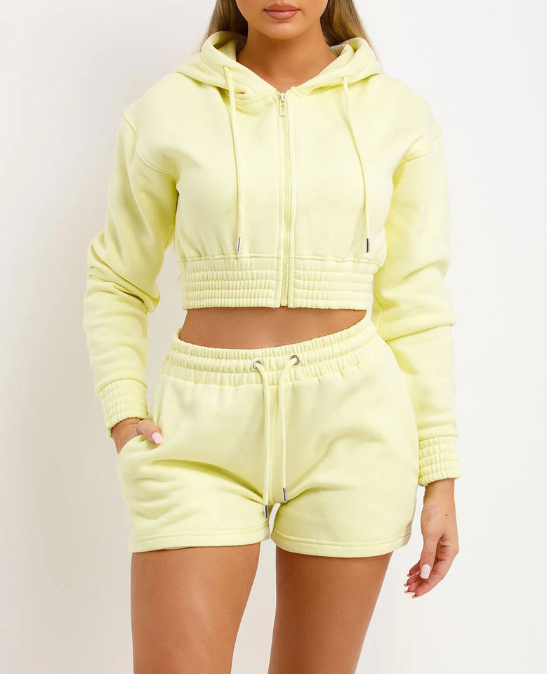 Nombre del Producto:Conjunto Corto de Sudadera con Capucha para Mujer
