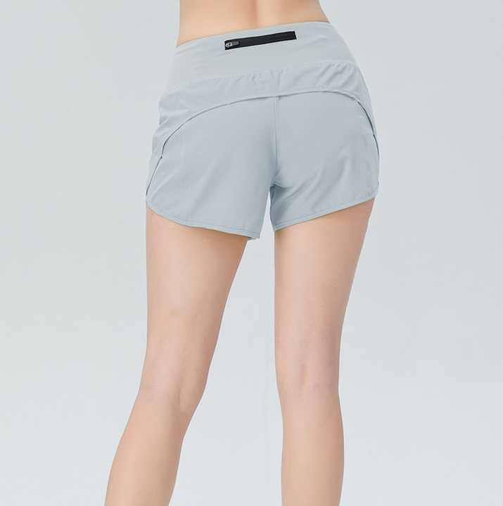 Pantalones cortos para correr de talle alto para mujer, pantalones cortos holgados de Yoga de secado rápido con bolsillo trasero y cremallera, venta al por mayor personalizada