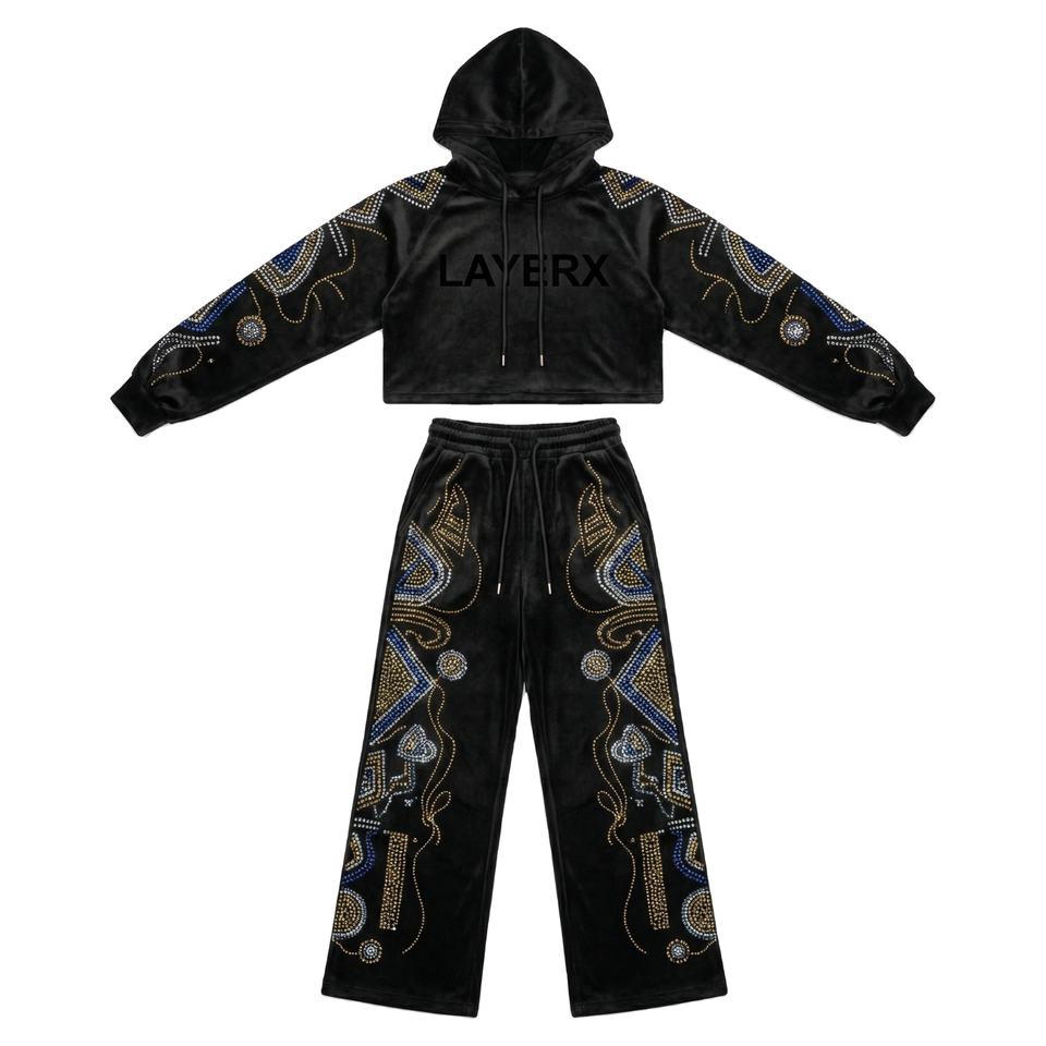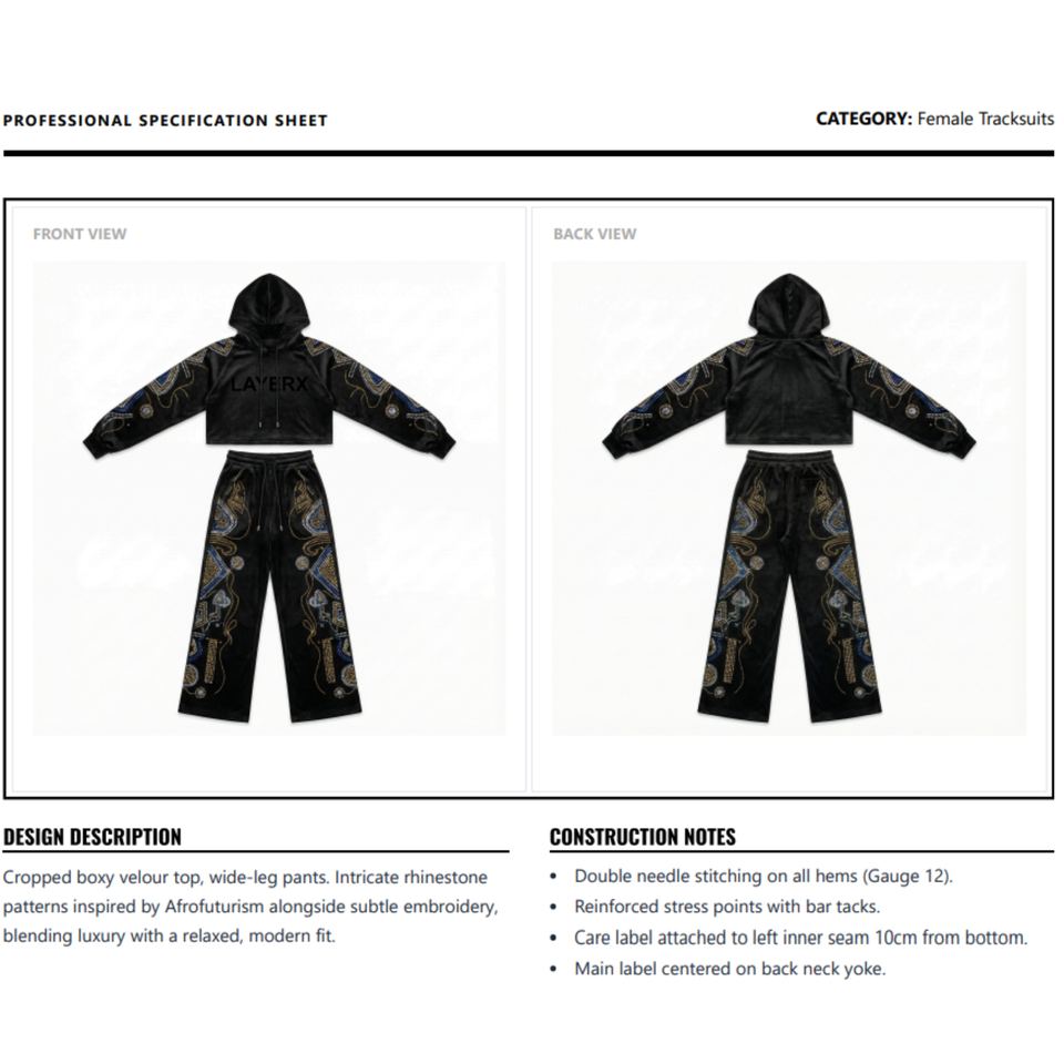 Técnicas:Tela de retales, Corte automatizado, Impreso, Bordado con rebordos, Bordado 3D, Lavado a piedra, Lavado de arena, De diamantes de imitación, Bordado de cadena, Aplique