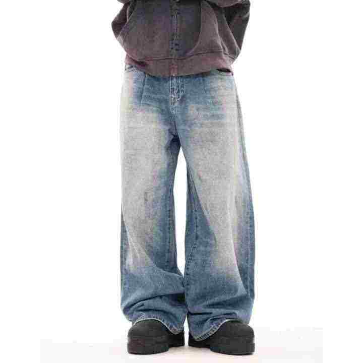 Pantalones vaqueros holgados de mezclilla para hombre con rayas laterales contrastantes y cinco bolsillos de pierna ancha personalizados