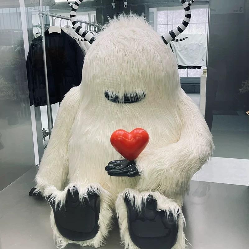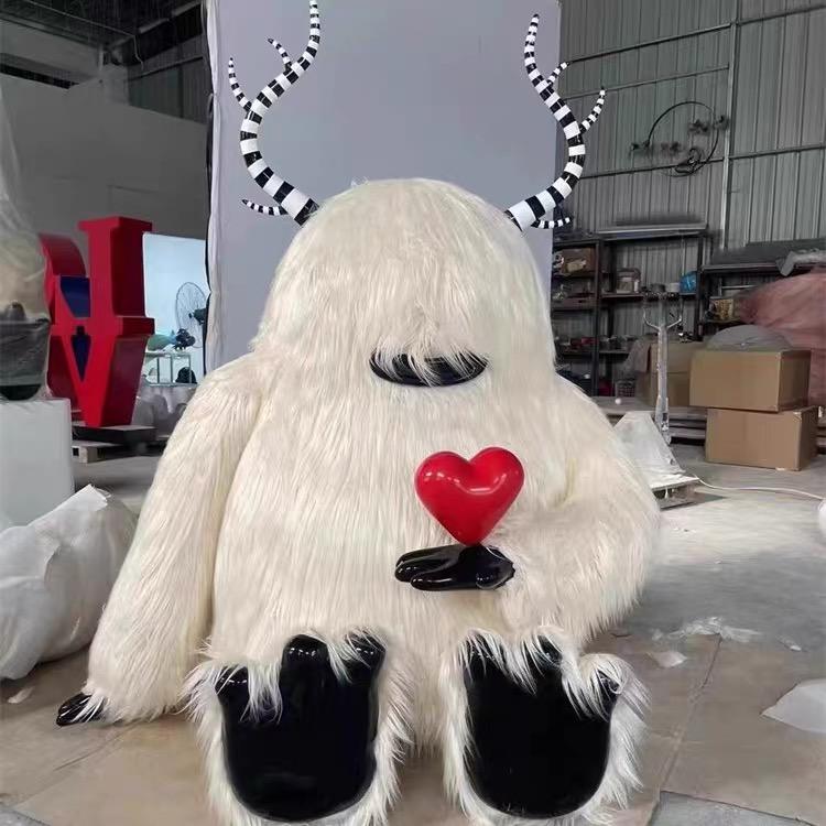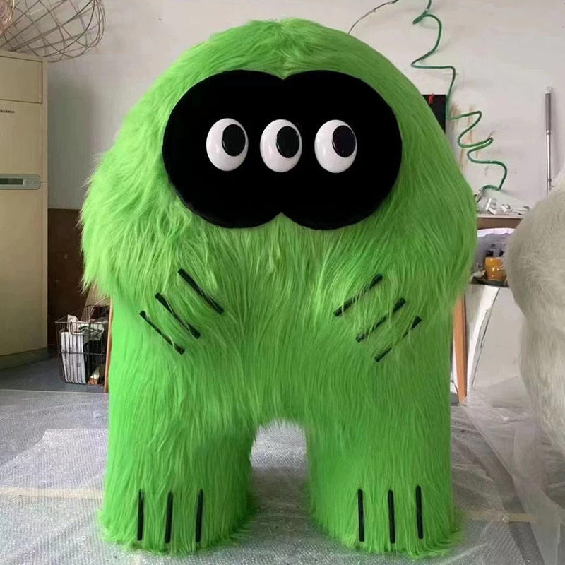 Escaparate Personalizado para Centros Comerciales, Punto de Fotos, Merchandising Visual, Estatua de Mascota de Fibra de Vidrio Grande Personalizada, Monstruo Peludo de Dibujos Animados