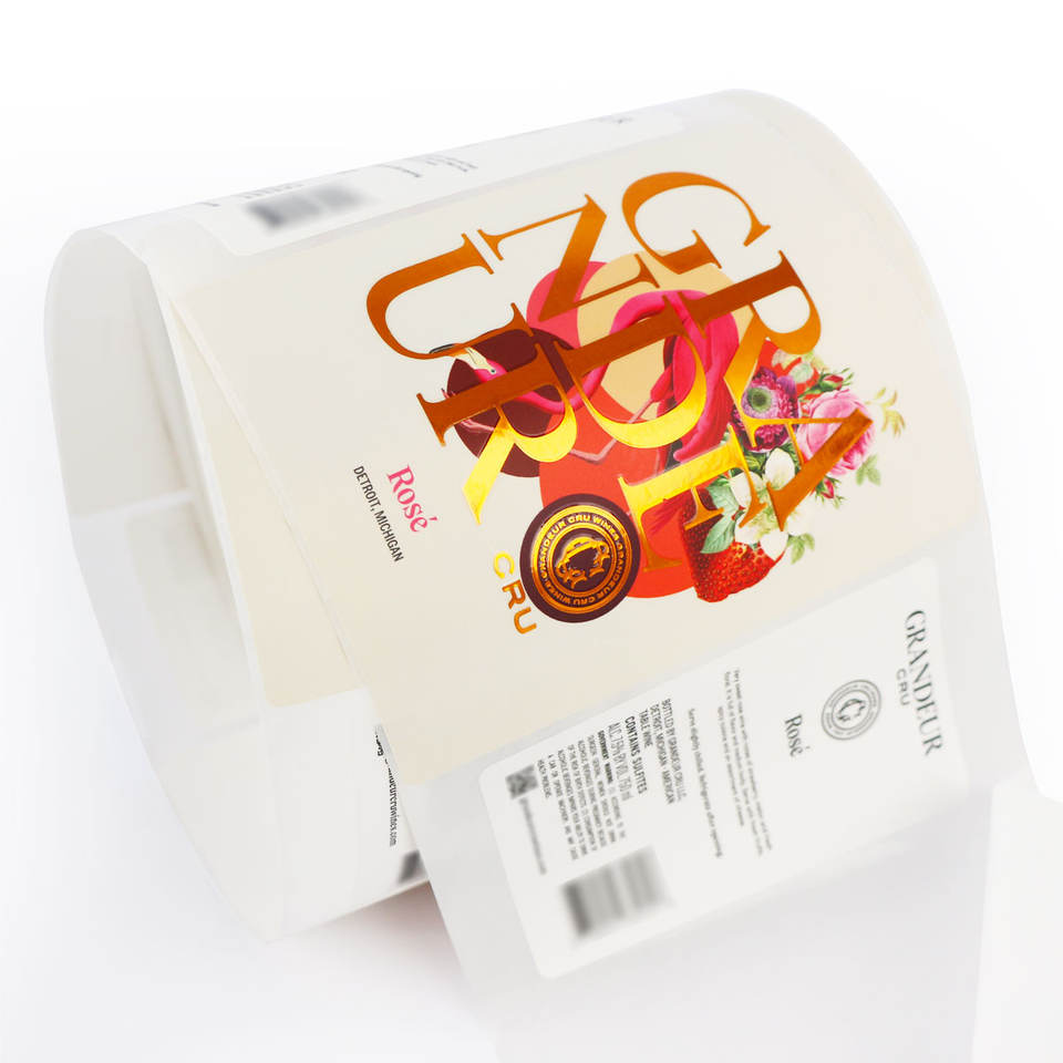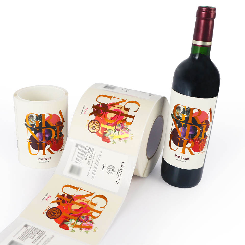 Etiqueta de Vino Personalizada, Papel Texturizado, Dorado Metálico/Rosa, Adhesivo Delantero y Trasero, Impresión de Etiquetas para Botellas de Vino y Champán