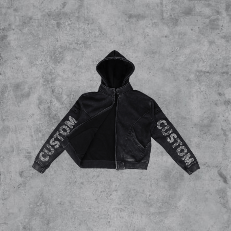 Sudadera con Capucha Personalizada para Hombre, Estilo Invernal, Lavado Ácido, Impresión Digital, Bordado, Bolsillo con Cremallera, Informal