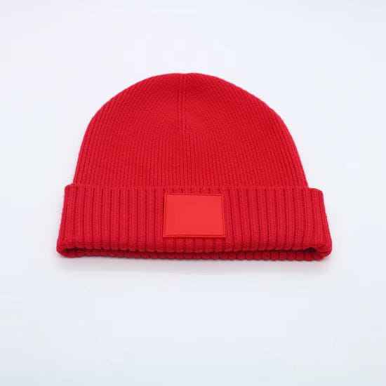 Sombreros de punto con puños de invierno unisex, gorros de color sólido con bordado, gorros cálidos personalizados para hombres, estilo liso