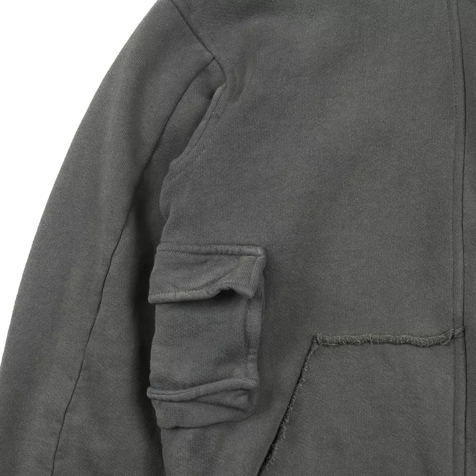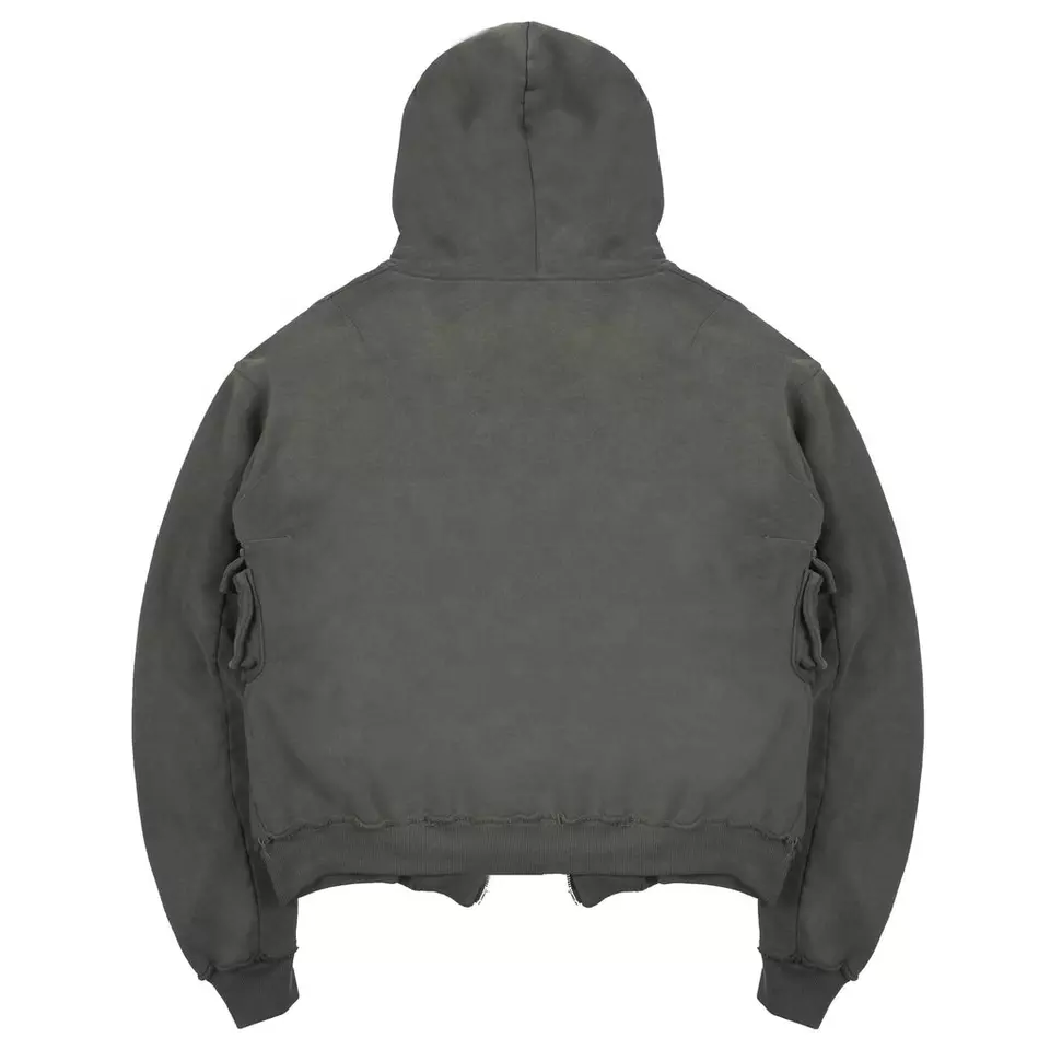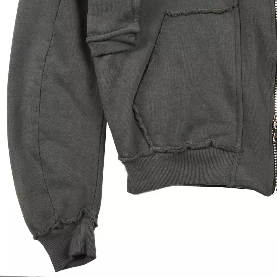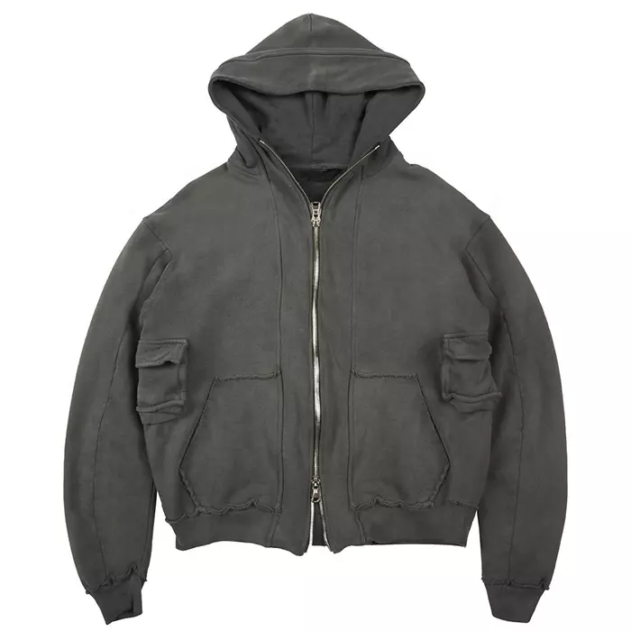 Personalizado de invierno de algodón pesado de punto Vintage en blanco chaquetas con capucha para hombre Borde crudo desgastado lavado Cargo bolsillo sudaderas con capucha