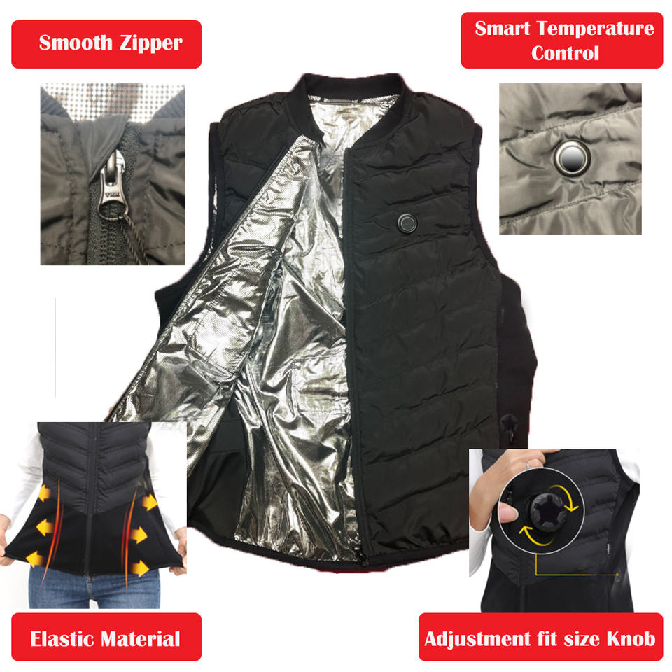 Chaleco Térmico Eléctrico USB Ligero Personalizado para Invierno, para Hombre y Mujer, con 4 Almohadillas Calefactoras de Fibra de Carbono y Forro Térmico Reflectante