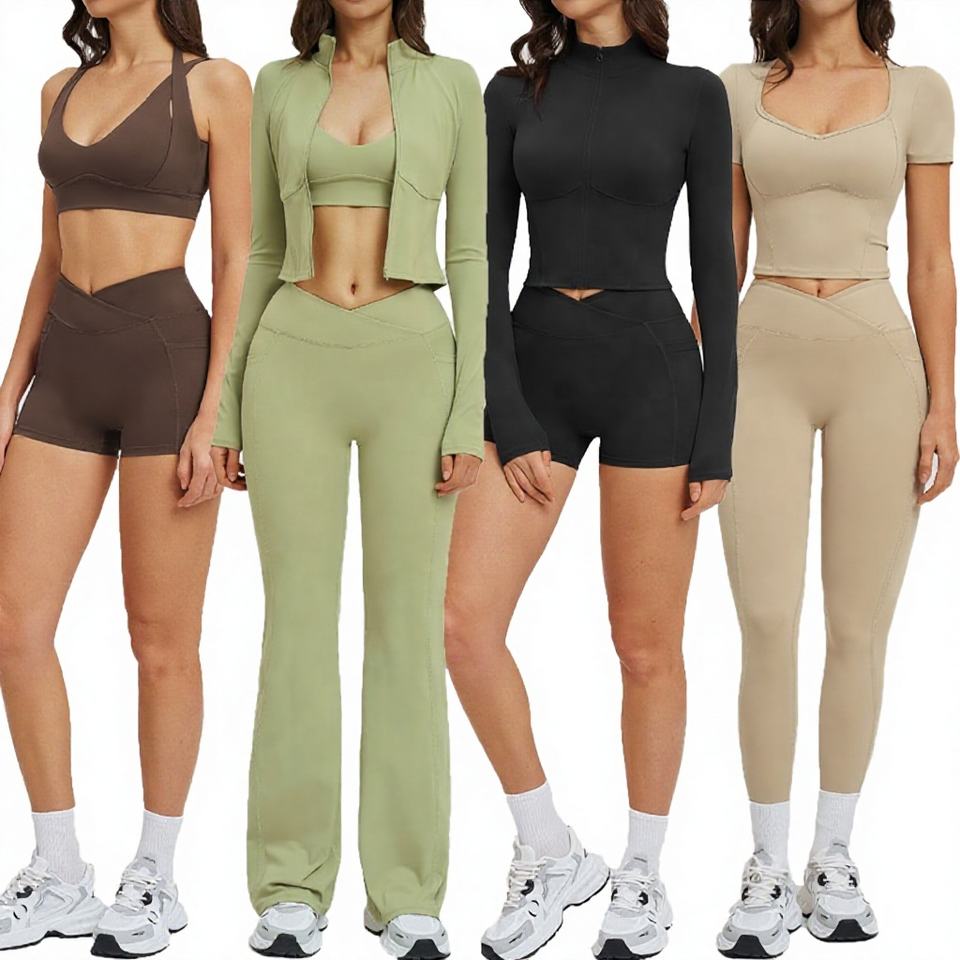 Conjunto Deportivo de 6 Piezas para Mujer, Diseño Sólido, Transpirable, con Logotipo Frontal, Leggings y Sujetador Deportivo de Alta Calidad para Gimnasio