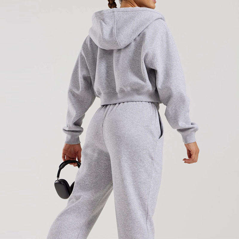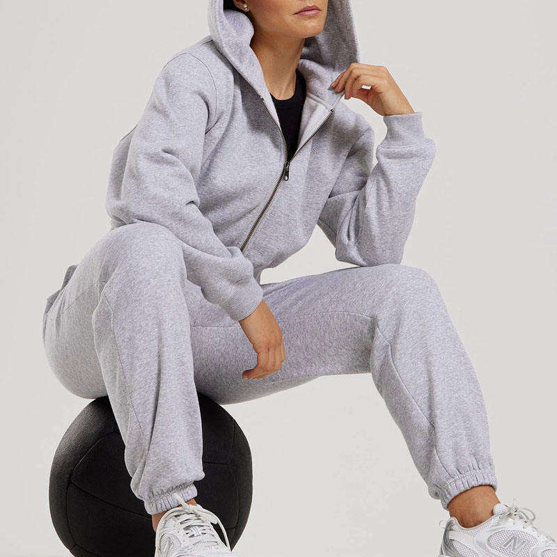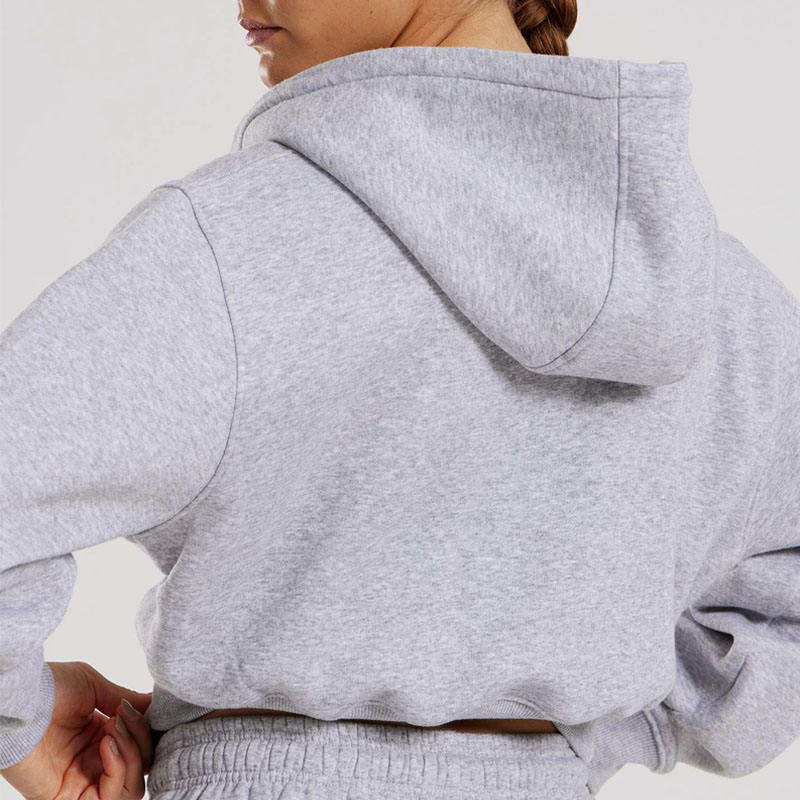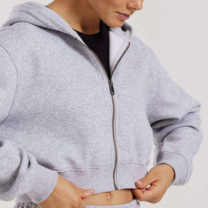 Mujeres personalizadas Boxy Oversized Cropped Hoodie algodón francés Terry Fleece Pullover Color liso Zip-Up Activewear Crop Top Jacket