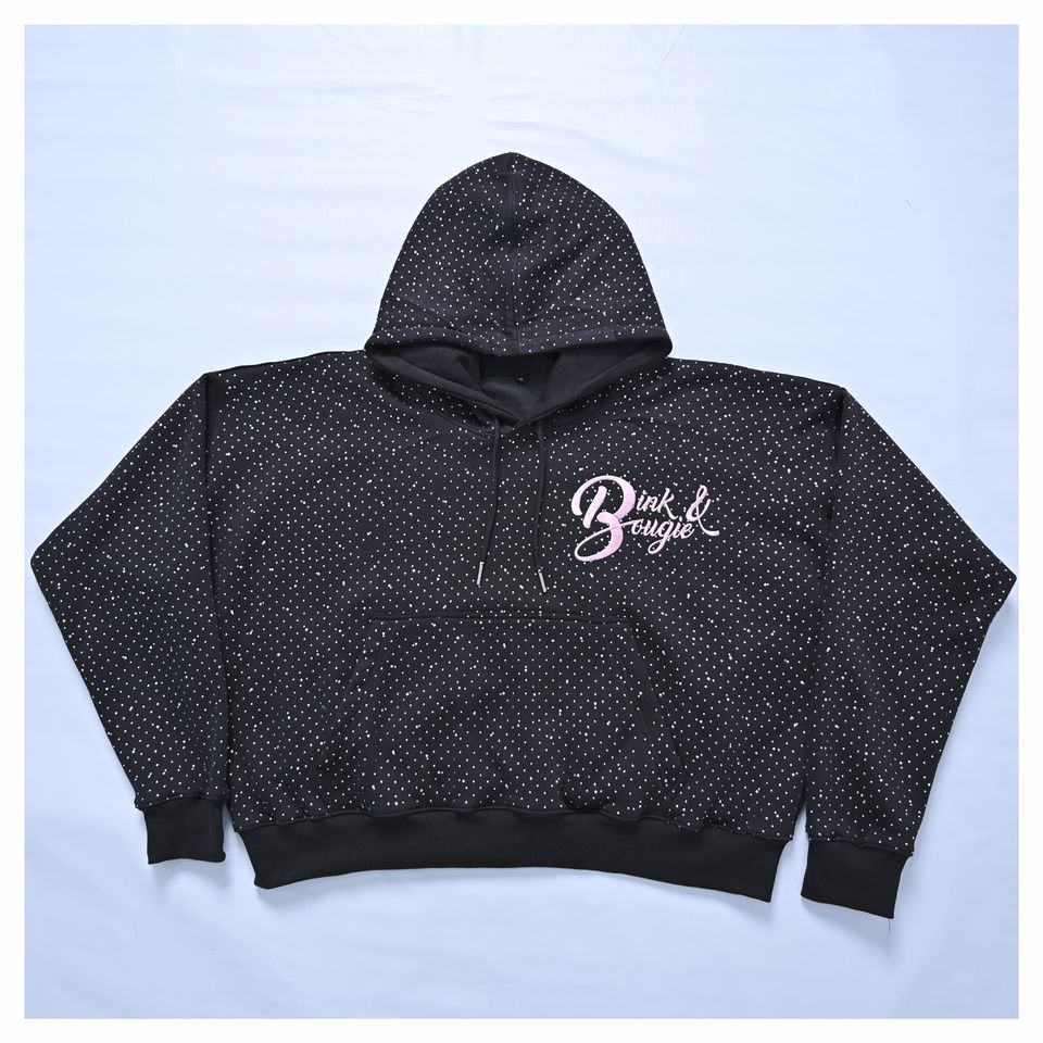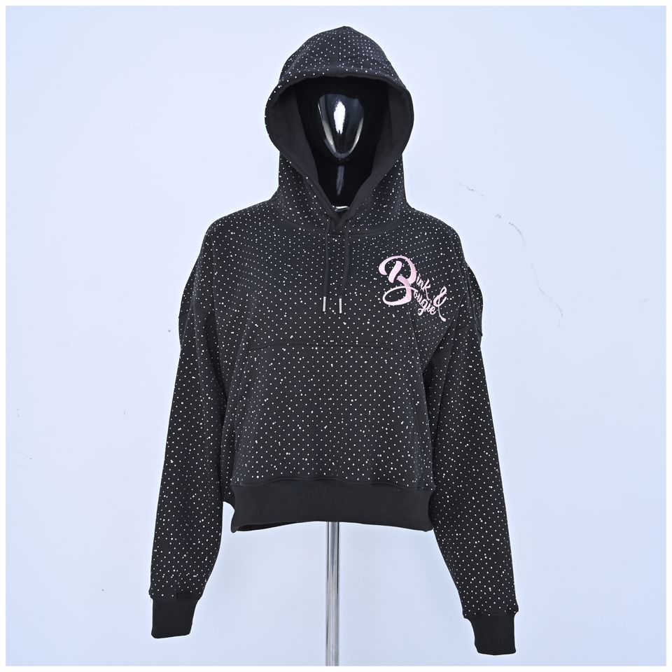 Sudadera corta con capucha personalizada para mujer con diamantes de imitación transpirable bordado Diseño invierno algodón polar jersey de gran tamaño ropa de calle OEM ODM