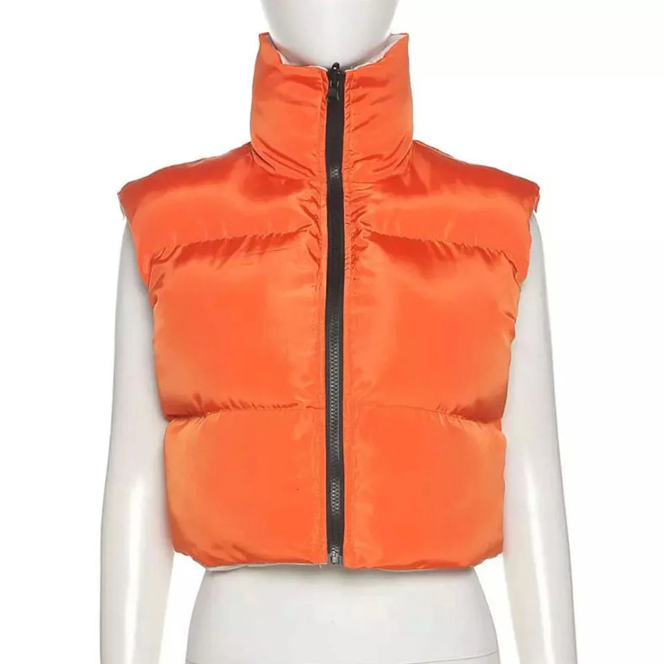 Personalizado mujer Puffer Bubble Crop naranja chaleco chaqueta invierno moda niñas recortada longitud chaleco abajo chaquetas de los hombres