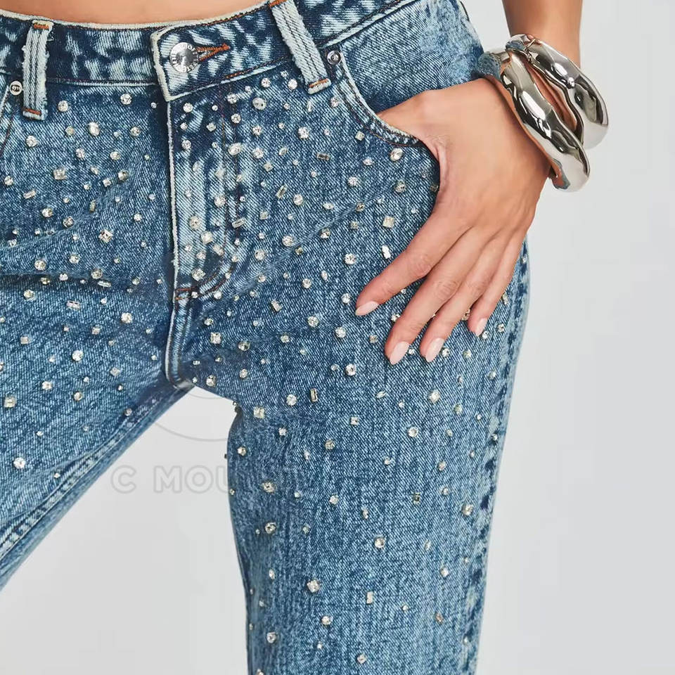 Pantalones de Mujer Personalizados con Pedrería, Estilo Hip Hop, Brillantes, Transpirables, Pantalones de Lujo con Pedrería para Mujer