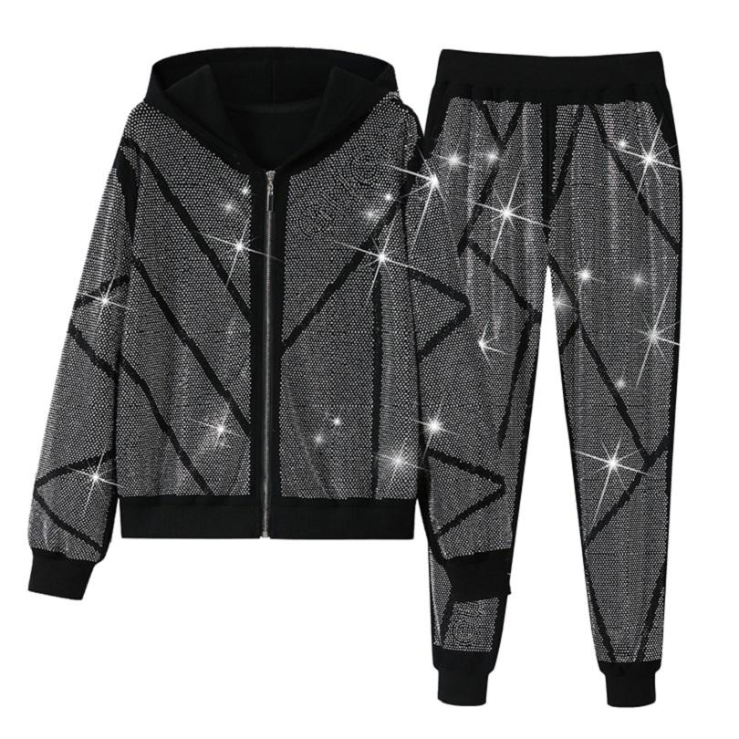 Keywords:rhinestone tracksuit,casual tracksuit, sweatpants set
