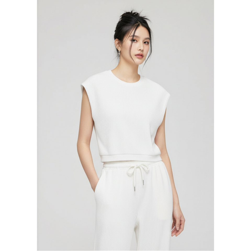 Conjunto de Dos Piezas Personalizado para Mujer, Tejido de Punto Acanalado a Rayas, Camiseta sin Mangas, Pantalones Ajustados, Tela Suave de Secado Rápido